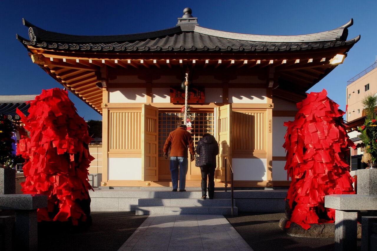 ph3 東覚寺門前の赤紙仁王。疾患の部位に赤紙を貼り願掛けすれば治癒するという。田端2-7-3。2010.01.05