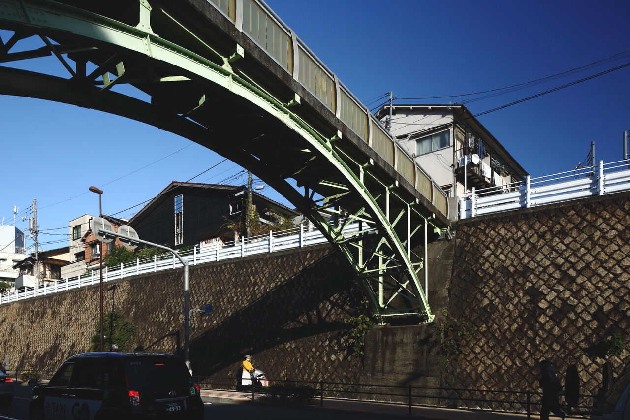 ph5 田端の切通し。鉄骨の橋は童橋。この橋を渡った奥に芥川龍之介の旧居跡。田端1-20。2021.11.24