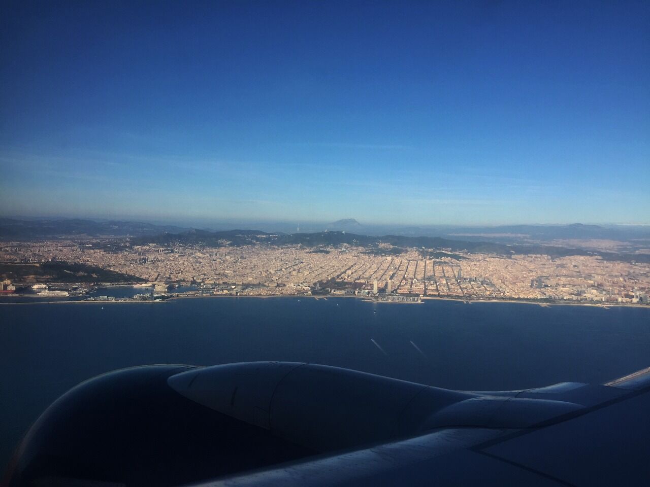 空路で街に入る時、ピレネーを超えるとコスタ・ブラバ(Costa Brava, 荒涼の海岸とでも訳せるだろうか)と呼ばれる海岸に出て、これに沿って南下するというコースをとる。このコスタ・ブラバは60年代、独裁者フランコのいる国へ越境しようというもの好きなボヘミアン達に人気のあった場所で、ダリは40年ほどこの一帯の小さな村に住んでいた。この絶壁が並び、その間に猫の額のような砂浜のある風景を右手に見ながら下り、バルセロナに入るというのが一般的な空路になっている。だから、入国時にはこれを目で追うために座席は必ず’J列’を取るようにしている。そうするとコスタ・ブラバが終わった頃には高度を下げてゆきバルセロナ空港に到着しようという寸前にバルセロナの街が一望できるからだ。海岸線に平行してグリッド状に整然と広がる新市街がまず印象的だ。92年バルセロナ・オリンピックの時に作られた選手村、そしてヨット・ハーバーに立ちすくむツインタワー、次いでジャン・ヌーヴェルのアグバールのタワー、その奥手にはサグラダ・ファミリアのシルエットもちらりと目に入ってくる。整然とした大半の街区とは性格が違っている海側には、密集し通りも飛行機からでは読み取れないが、鐘塔が何本か建ちあがっているのが見える部分が旧市街だ。新市街はこの旧市街を取り囲んでいる形になっている。更に周辺にはやはり古い市街区らしいごちゃごちゃしたポイントが複数見える。つまり、新市街は周辺の町や村と旧市街を繋ぐ役をしているからだ。ボーイングの777機のJ席についていてもこの光景はあっという間に通過してしまうので、Google MapsやGoogle Earthで見ていただいた方がよく分かるかもしれない。しかし、私にはいつもこれを見るとやっと家に戻ったのだという実感がわくシーンだ。