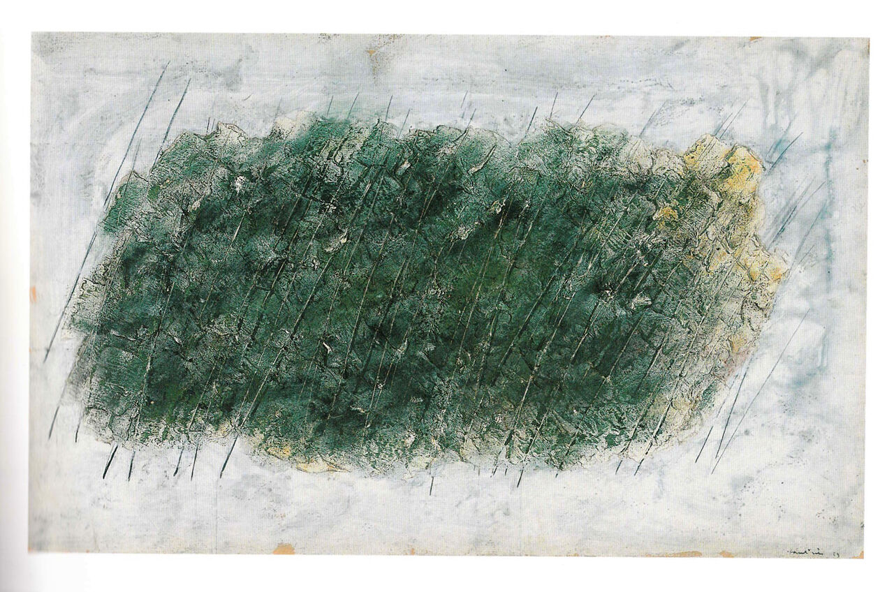 アンフォルメル旋風の余韻冷めやらぬ1959年11月に日本初のフォートリエ展が南画廊で開催された。新進の画廊が外国の巨匠を招いて新作展を行うのは画期的な出来事として連日観覧者が殺到し、新聞・雑誌などの反響も大きかったと伝えられている。カタログも出色の出来で、薄冊ながらフォートリエのマチエールを模した皺のある加工紙をカバーに用いた大判の装幀で、テキストはジャン・ポーラン、アンドレ・マルロー、東野芳明、富永惣一、そしてフォートリエの言葉(翻訳は大岡信)が収録されている。この時展示された「雨」と題する作品は大原美術館に収蔵されているが、これを見た現代美術のコレクター佐藤忠雄は次のように語っている。「日本橋のある画廊の二階でフォートリエの雨という題の絵を見て、異常な感動を覚えました。(中略)ただ一面に緑がぬりたくってあり、斜めにキズがつけてあるだけです。しかし、本当にそれは雨の感じがでているのです。緑の山の樹々に雨のふる感じが、身ぶるいするほど強くこちらの胸に響いてくるのです。物を借りなくとも、私達の感覚に直接強く訴えてくるものがあれば、それは美といって差支えない、とその時始めて思ったのです。」(「ABSTRACT ART IN THE SATO COLLECTION」私家版1970年1月刊)作家が雨をイメージしてこの絵を描いたかどうかはさておき、抽象画の見方の一つとして参考になる言葉ではないだろうか。