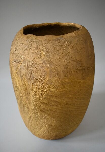 1932年に金沢の彫金家の長男として生まれた伊藤公象は、10代のころ陶芸家に弟子入りしますが、その後、伝統的な陶芸の世界から飛躍し、陶を使って現代の表現を追求してきました。あるときは土を凍らせ、あるときは乾燥による土の収縮や亀裂をも創作に取り入れ、自然現象を生かした独自の表現は早くから注目され、1978年にはインド・トリエンナーレ、1984年にはヴェネチア・ビエンナーレに日本代表として参加し、国際的にも高い評価を獲得しました。90歳を迎えた今も土の造形のパイオニアとして、笠間のアトリエで精力的な制作を続けています。