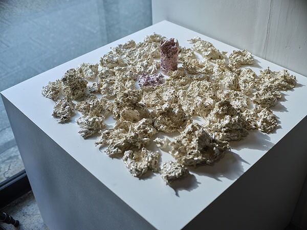 本展「ソラリスの襞」は、その詩画集のタイトルにちなんだもので、「ソラリス」とは、《回帰記憶》の命名に際し参照したポーランドのSF作家レムの小説『ソラリス』から引用したものだ。この小説では、ジェル状の海によって人間の記憶が物質化され、生命が吹き込まれる様子が書かれている。シュレッダー片を泥漿と混ぜ合わせて制作された《回帰記憶》は、ソラリスの海のように、見る者の記憶を活性化させる。伊藤の作品は、その初期から内部と外部を折り畳む粘土の「襞」が特徴的だった。伊藤は、そこにエロス(生命)と物質が混じり合う様を感じていた。この展覧会タイトルは、伊藤の作品そのもののように、作者と様々な他者を折り畳んで形成されている。観覧者もその襞の一部となって、作品に折り畳まれる鑑賞体験が期待される。