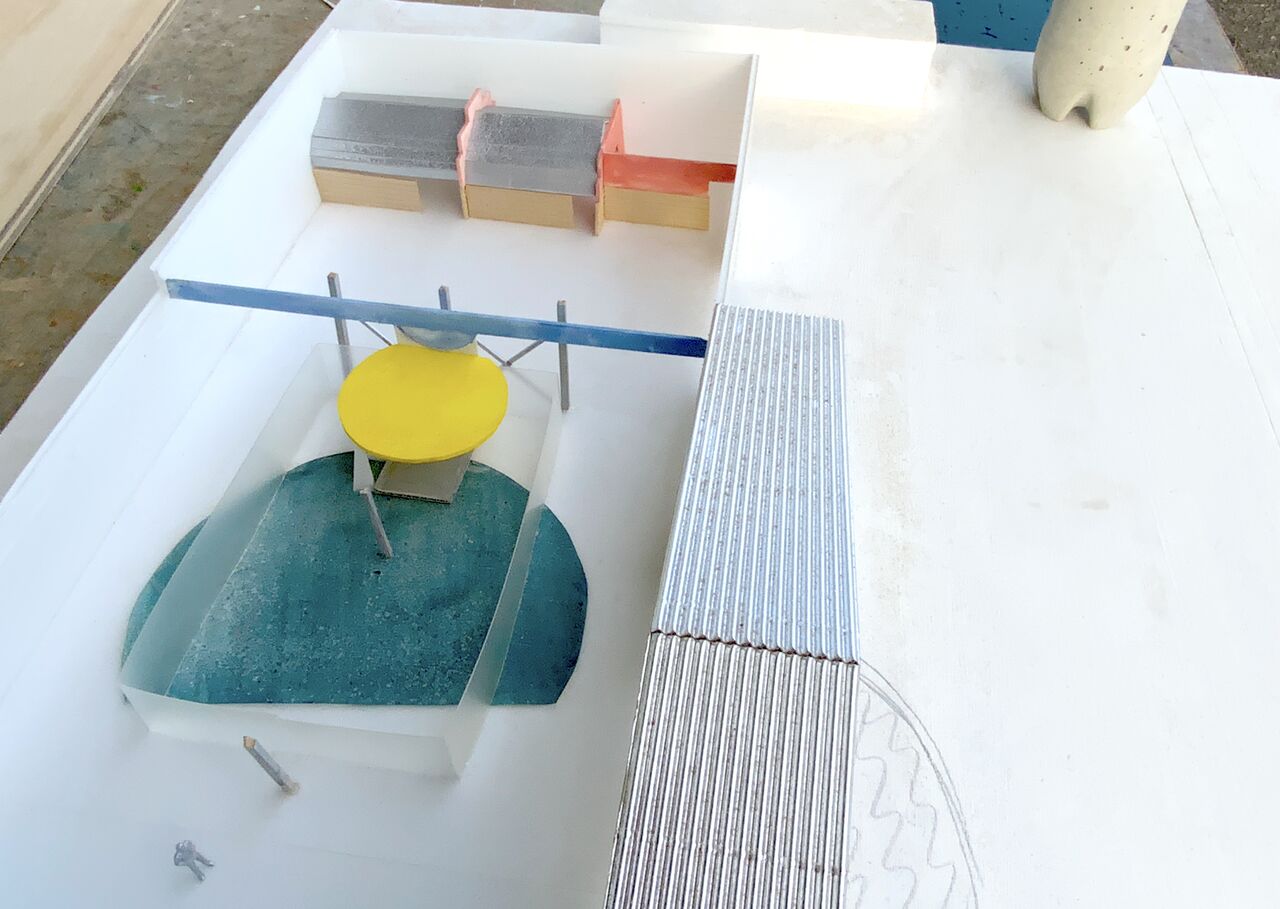 模型写真。特に建屋全体の配色計画について検討するためのもの。