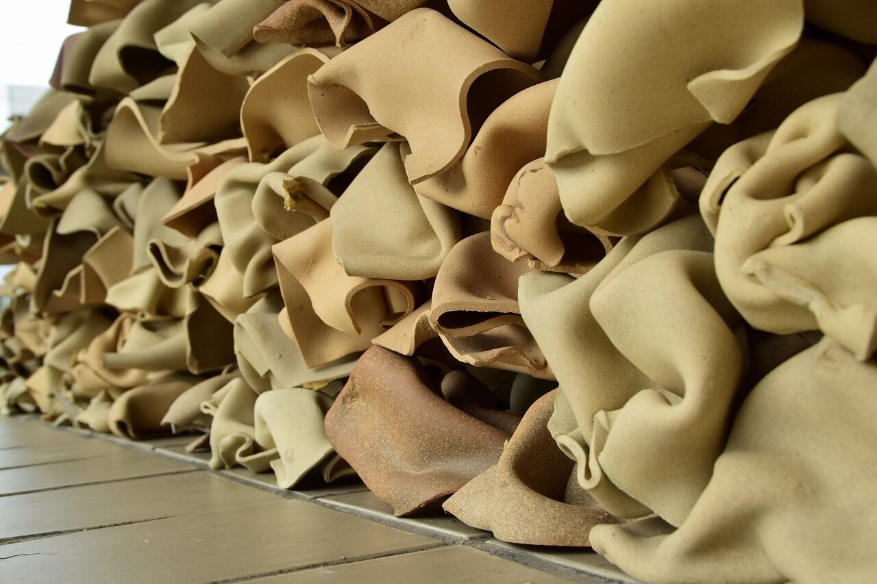 素焼き作品が崩れては直しを何度か繰り返した後、インスタレーションは完成した。
