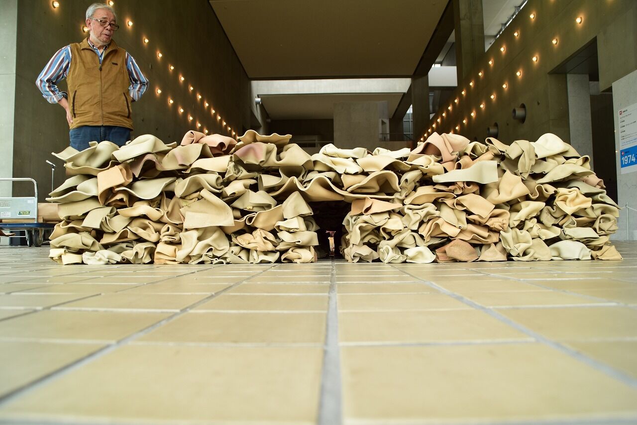 「木枠を使ってしまったら作品のコンセプトからずれてしまう。このトンネルは手で積まないと意味が無いんです。」とハッキリと伝えた。