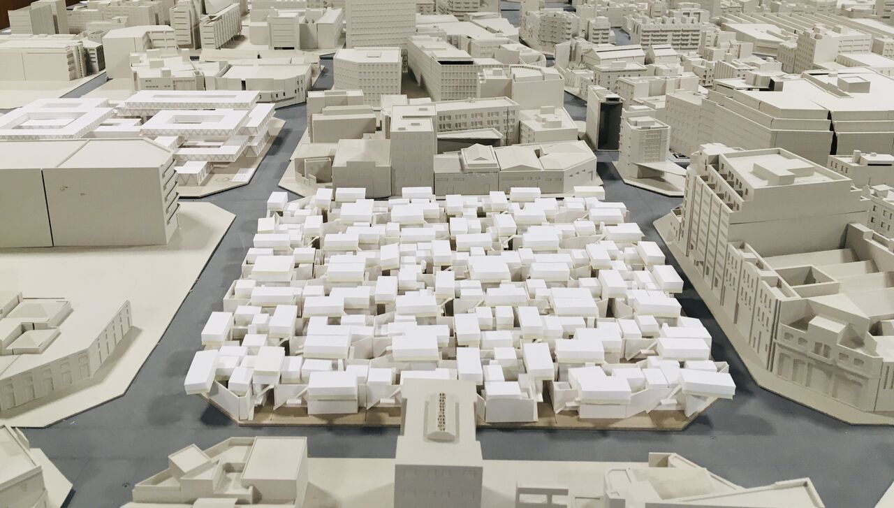 地区全体の敷地模型をCADコースでモデリングして、3Dプリントした巨大な都市模型です。これは、課題を理解する上で大きな助けになりました。こうして早い段階からモデリング、3Dプリントに慣れていくことで、建築家以外の道への可能性も自然と開けていきます。建築学科だからといって、全員が建築家を目指さなければいけないわけではありません。