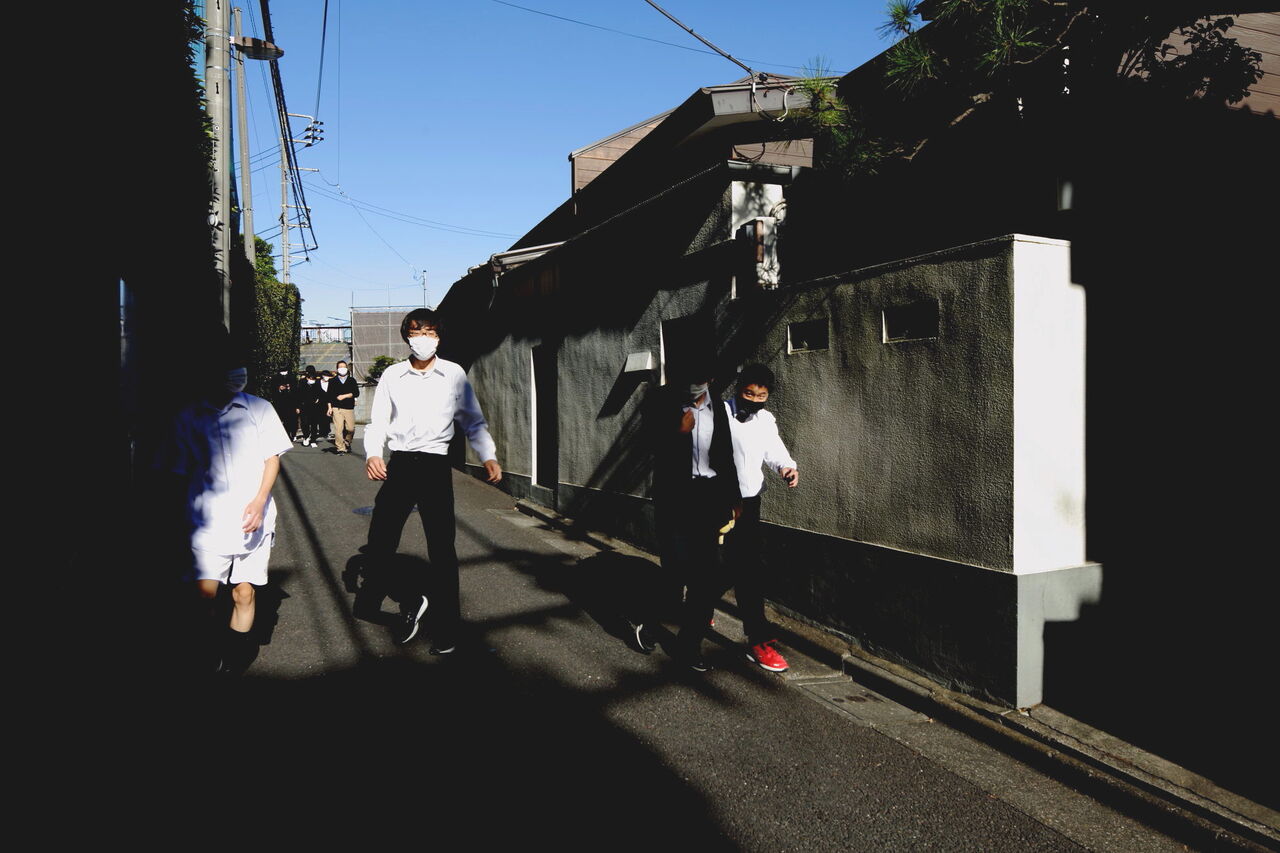 ph11-6V7A1664-zph11 ひぐらし坂。左は開成中学・高校。もと秋田藩の下屋敷。荒川区西日暮里4-2。2021.11.24