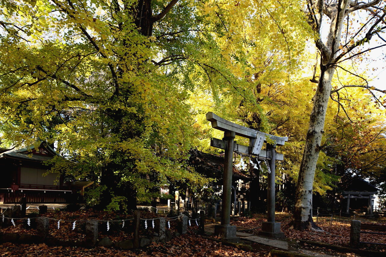 ph15 諏訪台通り。諏方神社。地蔵坂上の鳥居と銀杏の大木。荒川区西日暮里3-4-8。2021.11.24