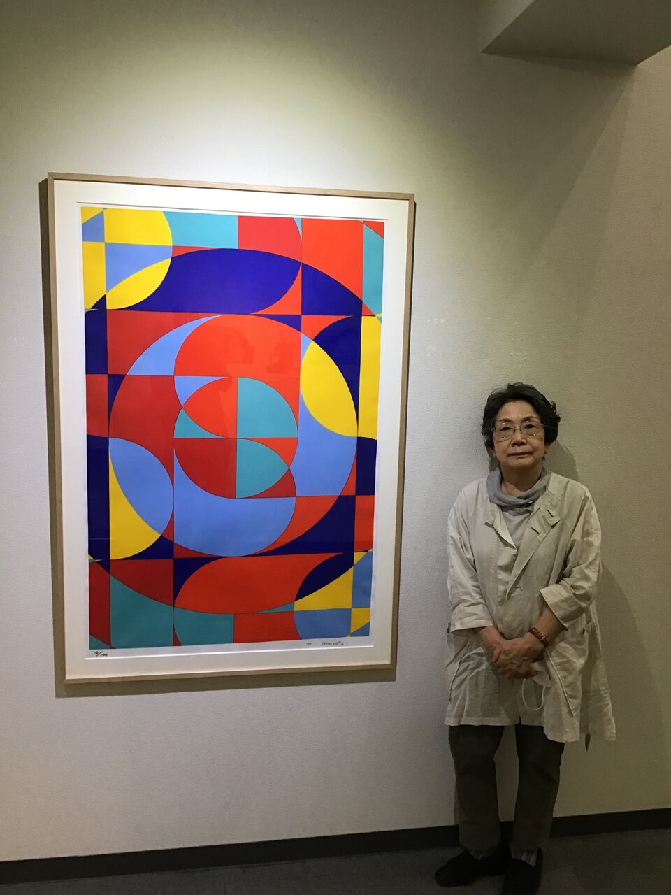 左は大川美術館にて、現代版画センターエディションの「Tapestry B(CeT4)」に再会した社長。