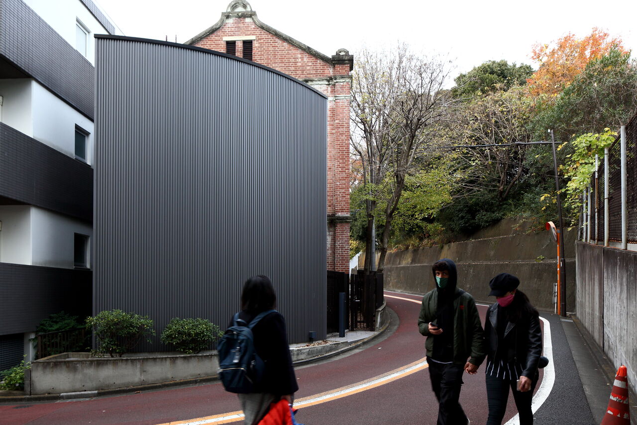 ph5 暗渠化した藍染川。流路跡の道路は、下流に行くほど狭くなり、不忍池のはるか手前で消失する。文京区根津2-3(右)、池之端4-5(左)。2020.12.10