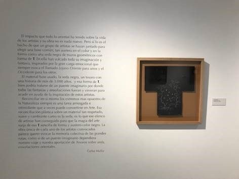 黒の羽織に西行の和歌、アントニオ・マチャドの詩を表現した作品や大河原淳行による和歌の書、わび寂和表現した作品などを展示し、7月7日には、日本人アーティスト:根岸文子 スペイン人アーティスト:チャロ カレラによるアクションペインティングも行われました。7月28日イグナシオ デ リアニョによる講演会”東洋の夢”、9月2日には根岸文子、カルロス ムニィス、アルフォンソ アルバせて、ギジェルモ ペレス ビジャルタによる座談会、アーティストの旅・日本も開催されます。