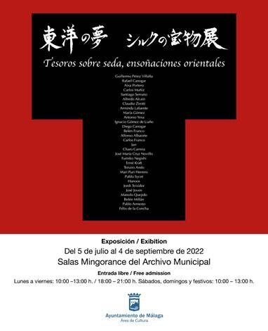 2022年7月5日から9月4日まで、マラガ市立資料館ミンゴランセ展示室で開催されている、「TESOROS SOBRE SEDA, ENSONACIONES ORIENTALES/東洋の夢・絹の宝物展」です。