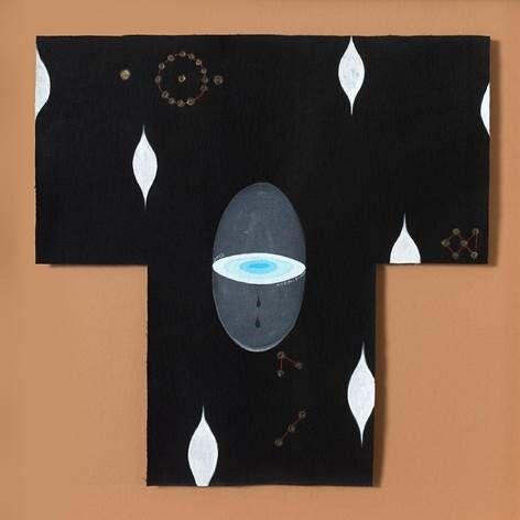 そして、東洋の夢・絹の宝物展では、日本の着物を思い浮かばせるTの形の黒い絹に31人のアーティスト達が作品を制作しました。二つの世界、東洋と西洋を結び、融合をテーマとしています。3000年の歴史をはぐくむシルクロードのように、歴史上、東洋と西洋の文化が出合い融合するとき、芸術革命が起こってきました。アーティストが多文化に出会う想像の旅:シルクロードでの旅路の経験を表現しているかのようにも見えます。東洋と西洋を結ぶ旅そして芸術と絹。それがこの展覧会です。