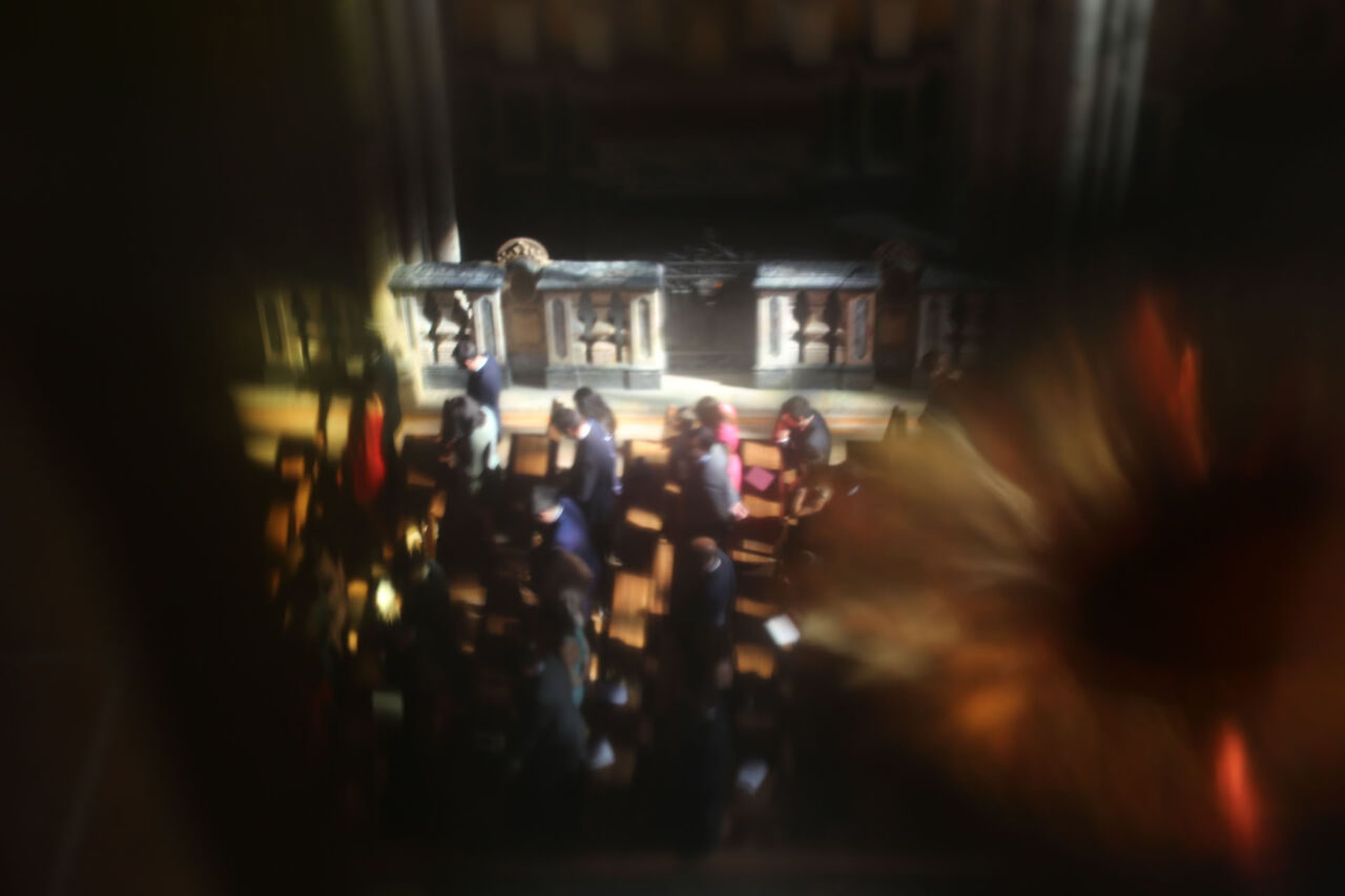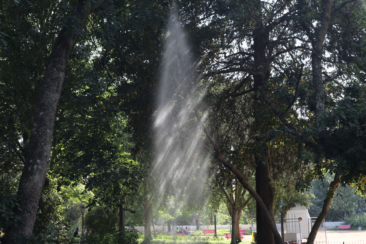 散歩に疲れた頃、急にレンガが現れた。公園とも庭園とも言えない空地が、低いレンガの塀で囲まれている。よく見るとその公園の周囲には、部分的にレンガが使われた壁があったり、コンクリートブロックがアーチになっていたりする。レンガとアーチといえば古代ローマのモチーフ、この公園は明らかにローマを謳っている……!公園には水盤があり、水が流れる方向に軸線を持って作られている。ここは推理のしどころ、この軸は何かを指しているに違いないと地図を見てみると、あった、あの謎の階段である。そういえばレンガの壁もずぶずぶ地面に埋まっていくように見えて、低地にある池を目指しているかのよう。階段前にあったステージに倣って軸の角度を10°ひねると、向かった先にあるのは─── ローマ時代から栄えたエヴォラの街。水道橋が一生懸命に水を届けた、ジラルド広場なのだった。なるほどあれは古代ローマへと時をさかのぼる階段だったのかも知れない。階段の先は切り落とされているのではなくて、二千年前の空に向かって消えているのでは……。よく見れば階段の先端が45°上を向いて空を見ている。すばらしい建築は、ほとんど物語のようである。
