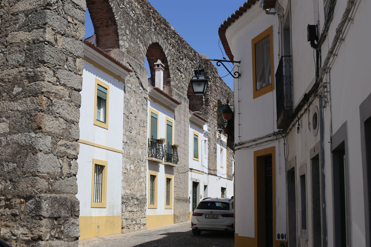 エヴォラの街が見えてくる。2時間もかからない距離だけれど、首都の喧騒とは別世界だ。内陸の強い日差しはスペインに近づいていることを感じさせ、リスボンの街は海風によって随分と暑さがやわらいでいることを実感する。エヴォラの街は城壁によって囲まれている。1世紀のローマ時代の神殿跡や、人骨で埋め尽くされた礼拝堂など見所はたくさんあるが、中でも興味を惹かれたのは16世紀に建設された水道橋だ。水道橋は郊外の水源から出発し、城壁に囲まれたエヴォラの街に14mの高さで貫入してくる。いかにも「貫入」という唐突な入り方で、当時の水不足がよっぽど差し迫っていたことを思わせる、なりふり構わない印象だ。だが街の中央が高くなるエヴォラの地形に対して、水道橋は水を運ぶためのものだから自由に上げ下げできず、頭はほぼ同じ高さ。その結果、巨大な水道橋は地面にずぶずぶ埋まっていくようにして進み、どんどん高低差が縮まっていき、場所によっては手が届く高さになりながらもなんとか必死に中央のジラルド広場まで水を届けるのだ。時に民家の壁に使われ、時に落書きされながら、濁流に飲まれるように都市景観と一体化して広場にたどり着く、いじらしいその姿。将軍に密書を届けてその場で力つきる使者のようである。