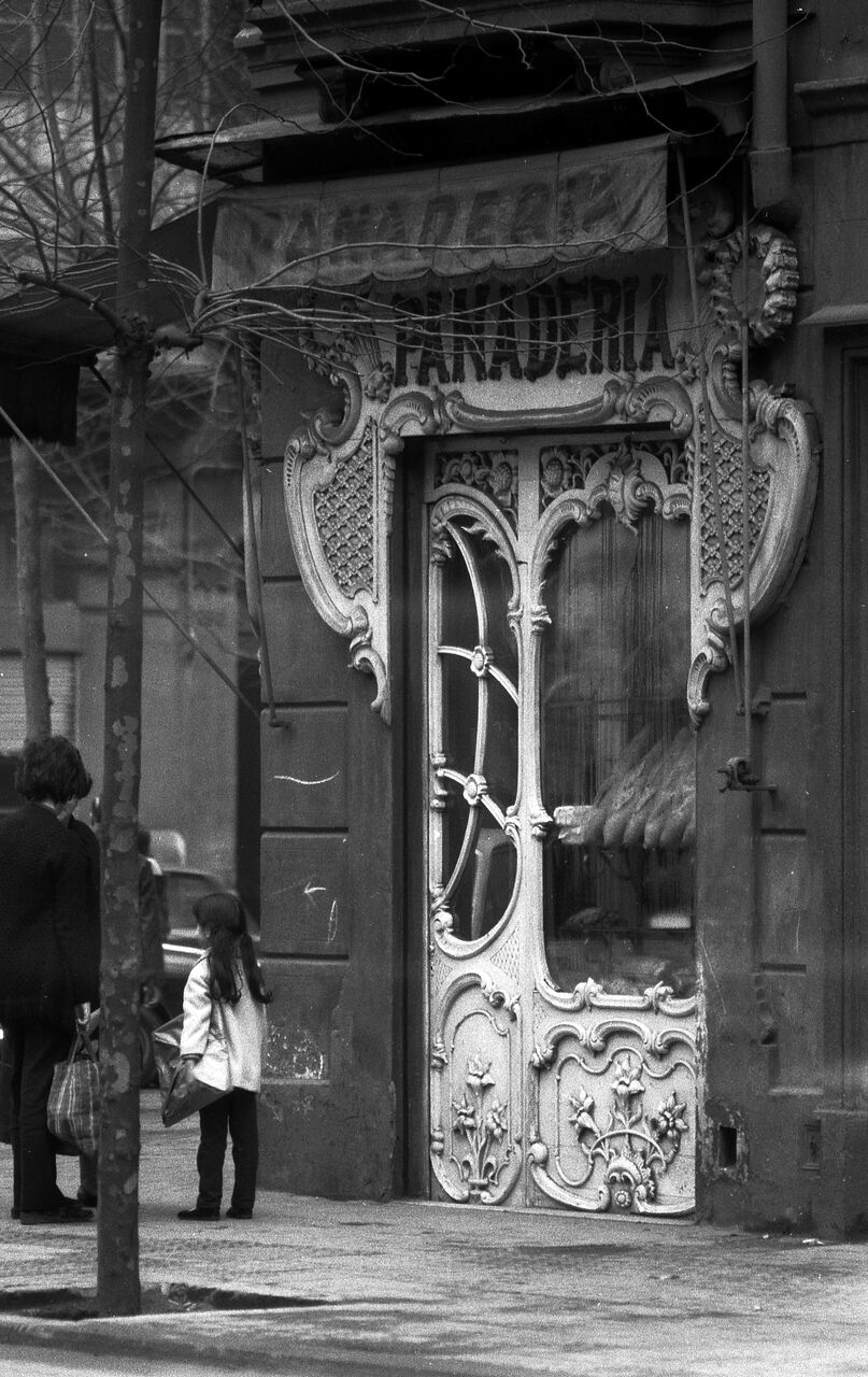 カテドラル向かいにある建築家協会の図書館は当時は公共図書館だったので会員以外でも自由に入ることができた。ここではガウディがジョアン・マルトレイ(Joan Martorell i Montells, 1833~1906年)の事務所で働いていた頃、ドラフトマンとして描いたカテドラル正面ファサードのコンペ案のオリジナル・ドローイングが無造作に壁にかかっていて衝撃を得たのを覚えている。そして、この図書館ではボイーガスが書いた『モデルニスモ建築』という大著に感動した。(文:Oriol Bohigas, 写真:Leopordo Pomes, 原題:Arquitectura Modernista, 出版社: Lumen, Barcelona, 1968年) この本は大判で総330ページという大著であった。前文はブルーノ・ゼヴィ、最初の章はモデルニスモの流れがよく分かる年表。その次はポメスの写真によるドキュメント。そして本文、最後にモデルニスモ建築家の主だった作品が羅列されるという構成だ。ポメス(1931 ~2019年) はこの本の後、コマーシャルの分野で大成するのだが、この時代はストリートカメラマンとして面白い仕事を残している。