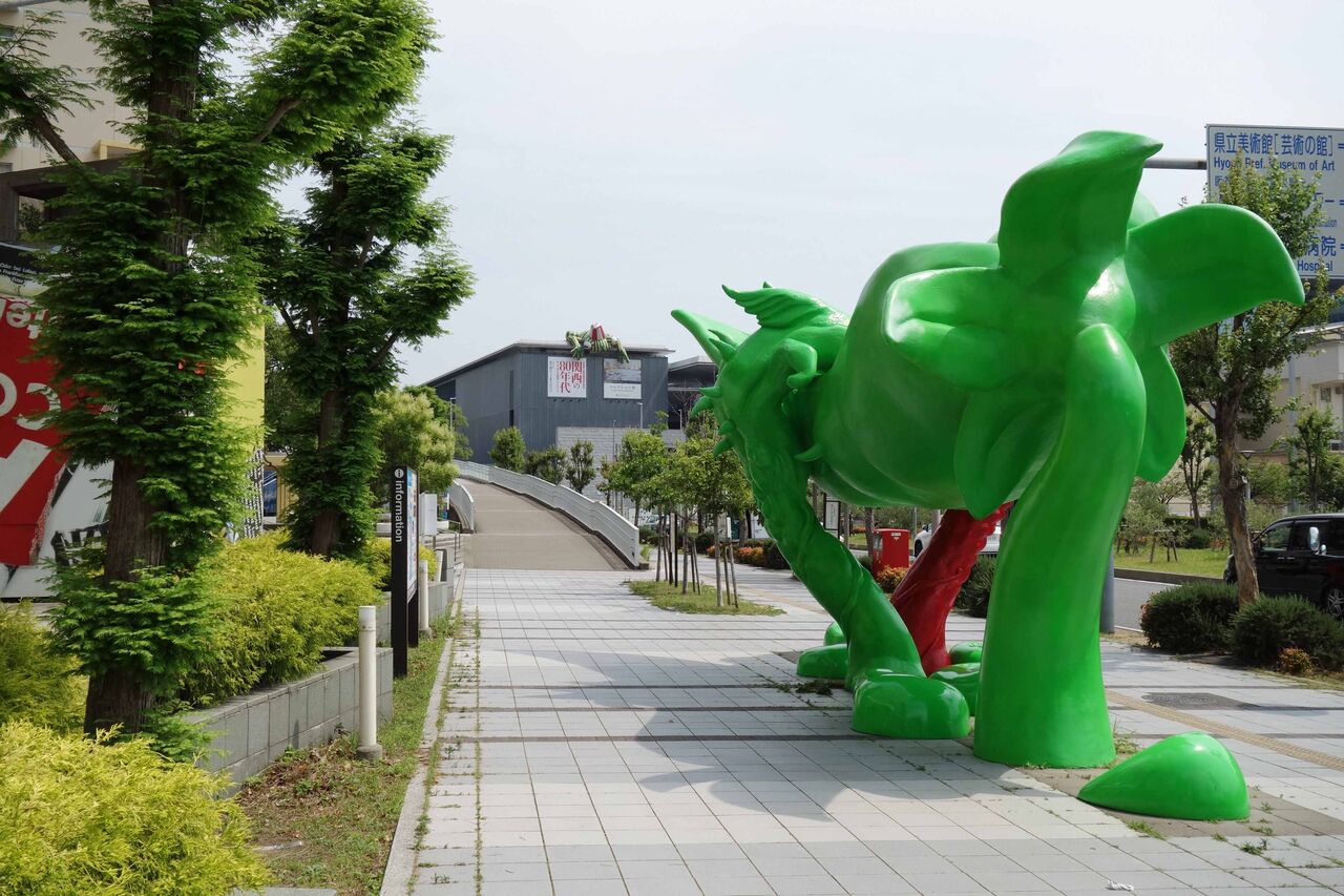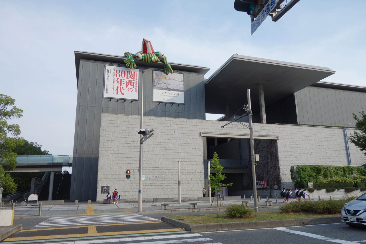 阪急電鉄神戸線王子公園駅で下車しミュージアムロードに沿って海側へなだらかな坂を下る。JRと阪神を超えておよそ20分。椿昇のオブジェのお尻(?) から美術館屋上で待ち構えるホフマンの愛くるしいカエルを望む、暑い午後で参ります。