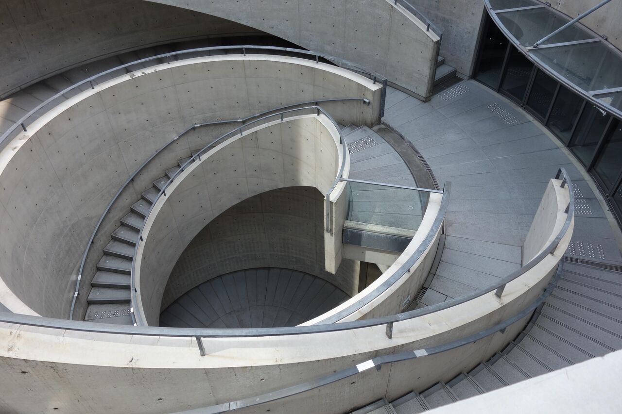 兵庫県立美術館は延床面積・約28,000㎡。堂々とした要塞のような、神殿のような建物で、初めて訪ねた時には、迷路にたじろぎ(今回もだが)、足が痙った。今日は海のテラス側に出てマグリットを連想させる安藤忠雄のオブジェに近づき、氏のメッセージを読む。「目指すは甘く実った赤リンゴではない、未熟で酸っぱくとも明日への希望に満ち溢れた青りんごの精神です」と──。