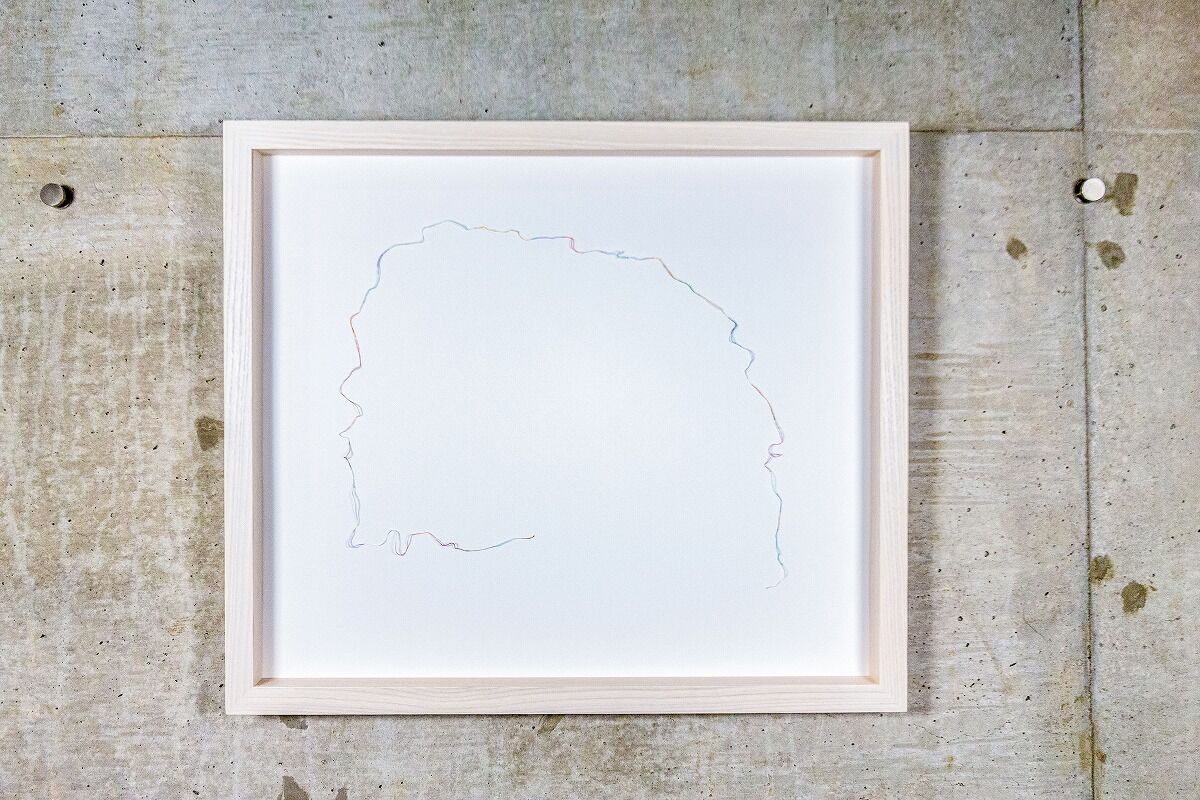 <トイレットペーパーを素材とした一連の作品に見られるように、柔らかい素材は、形態を固定せず空気を含んで伸び縮みしながら、展示空間に寄り添うことを可能にする。作品そのものが持つ複雑な空間と展示空間が相互に作用し、位置によって異なる表情を見せるため、鑑賞者は距離、角度などを変えるための運動を促される。>
