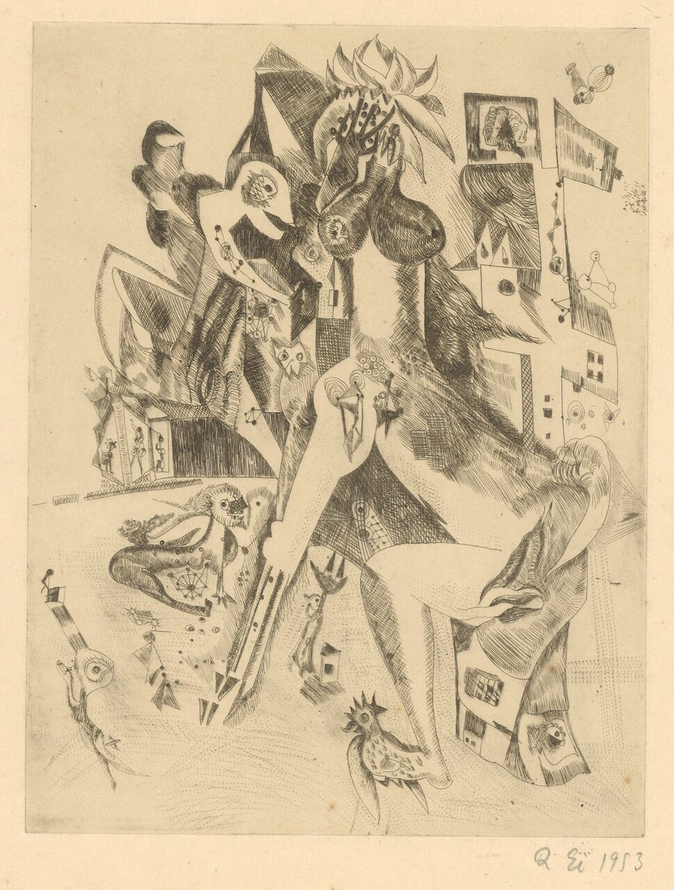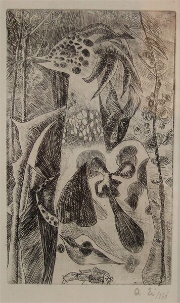 *林グラフィックプレス版「瑛九・銅版画」カタログではNo.1「過去」1953年、E.A.2と記載