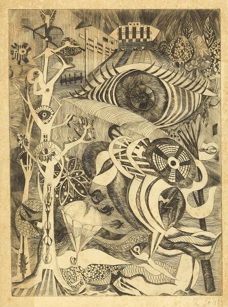 *林グラフィックプレス版「瑛九・銅版画」カタログではNo.174「空想」E.A.1と記載
