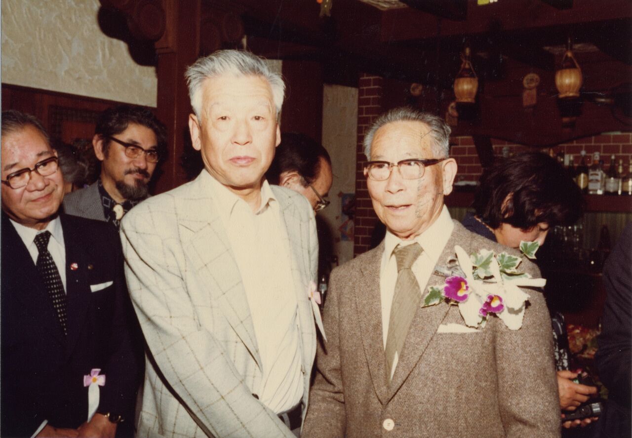 ④北川民次米寿祝い 名古屋日動画廊にて 1981年 左より、久保、北川
