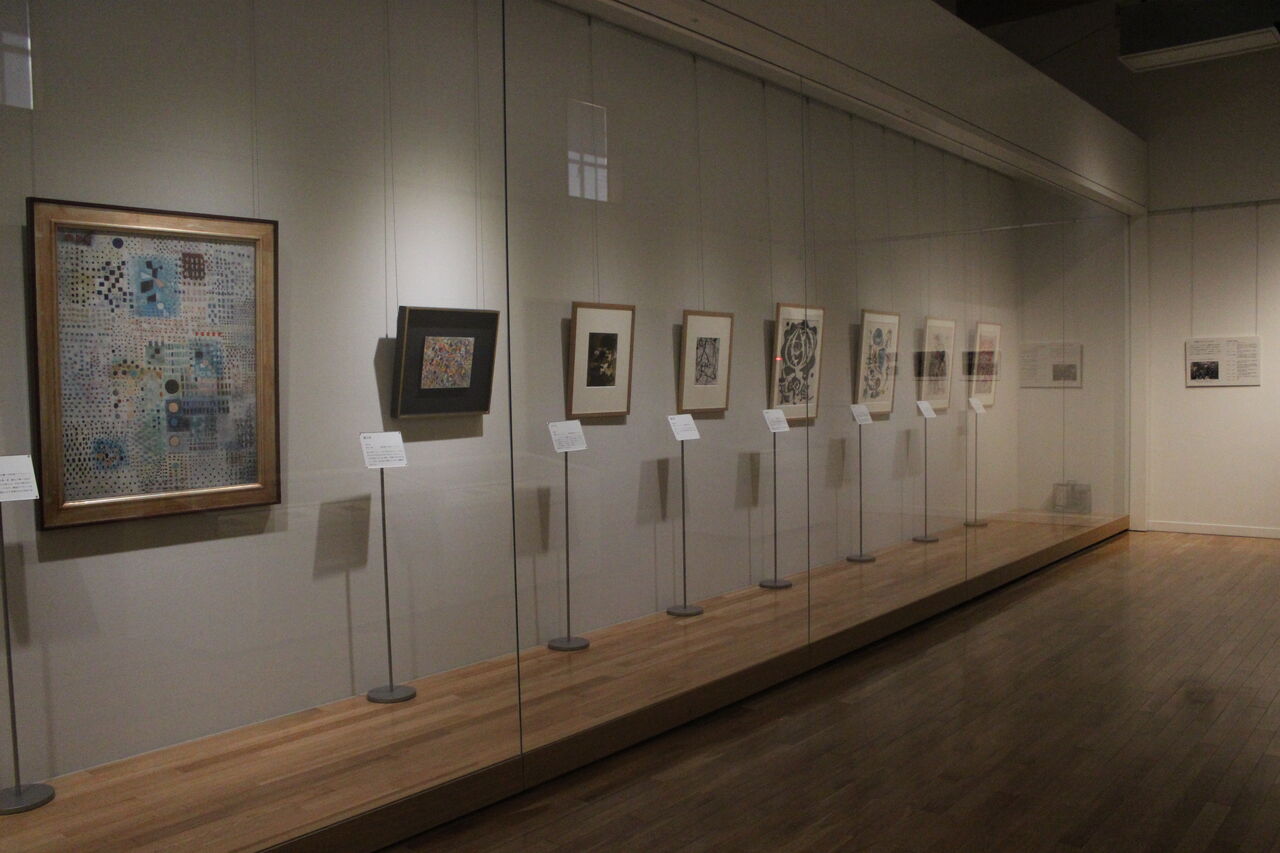 ⑤美術品展示館真岡市では、2013(平成25)年に久保のご遺族から、版画を中心に、油彩画、水彩画など、約1500点以上の久保コレクションの寄贈を受けました。作家数は89名にも及び、実に幅広い久保の交流関係をうかがい知ることができます。主な作家は、前衛芸術を志した瑛九、オノサト・トシノブ、靉嘔、磯辺行久、池田満寿夫、メキシコに渡った北川民次、竹田鎭三郎、ニューヨークで活躍した木村利三郎、飯塚国雄など、それぞれが独自の道を歩み、戦後の日本美術を語る上で欠かせない存在ばかりです。また、久保と親交のあったアメリカの小説家ヘンリー・ミラーの絵画コレクションも多数収蔵しています。美術品展示館では、久保コレクションや、久保や瑛九などとも交流のあった額縁作家・宇佐美兼吉から1994(平成6)年に寄贈された宇佐美コレクションを中心に、年に数回の企画展を開催し、真岡市ゆかりの美術を紹介しています。