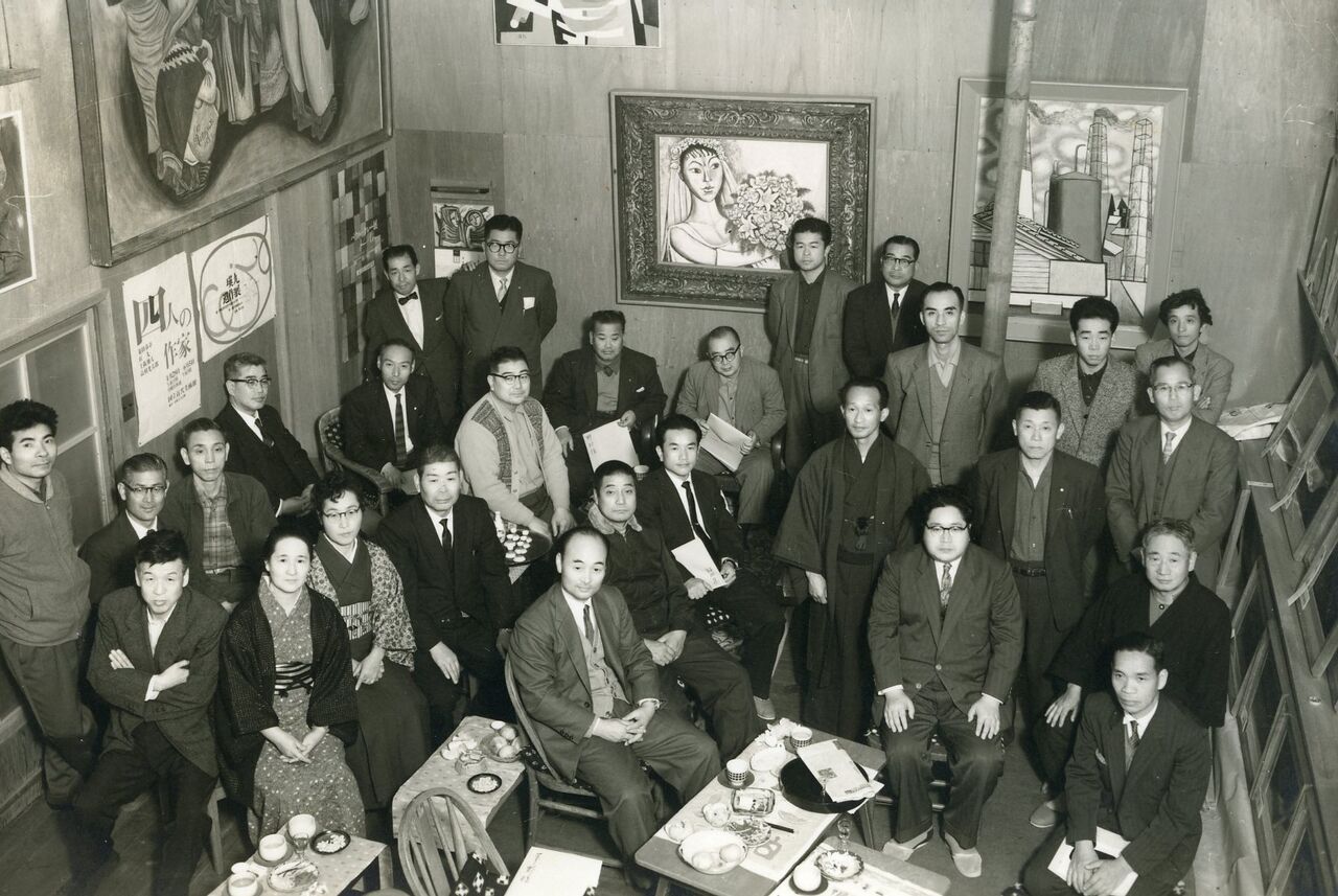 ⑦真岡近代絵画鑑賞頒布会 久保アトリエにて 1961年 左より、宇佐美兼吉、久保、佳世子夫人