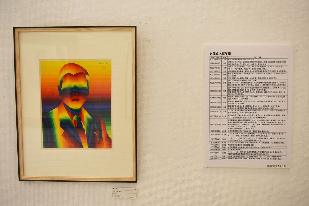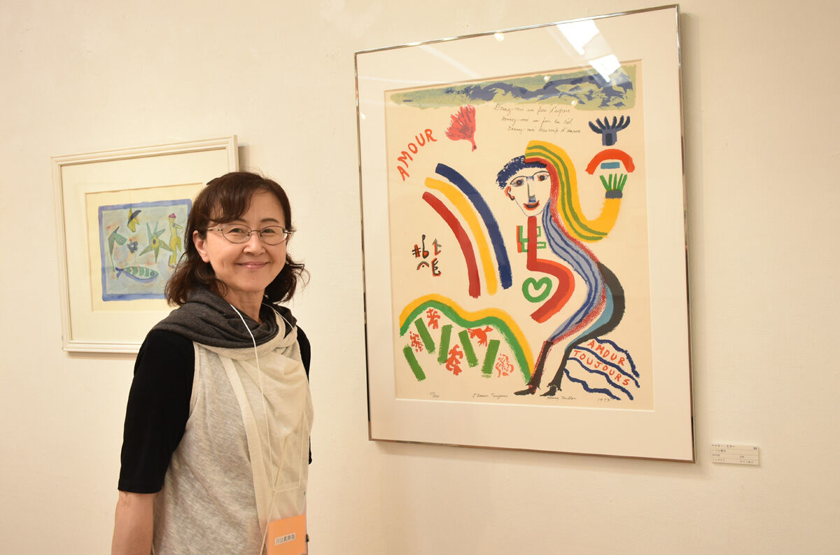 ヘンリー・ミラー「いつも愛を」の前で。川口真寿美さんのエッセイ「久保貞次郎先生の思い出」は10月22日のブログに掲載します。