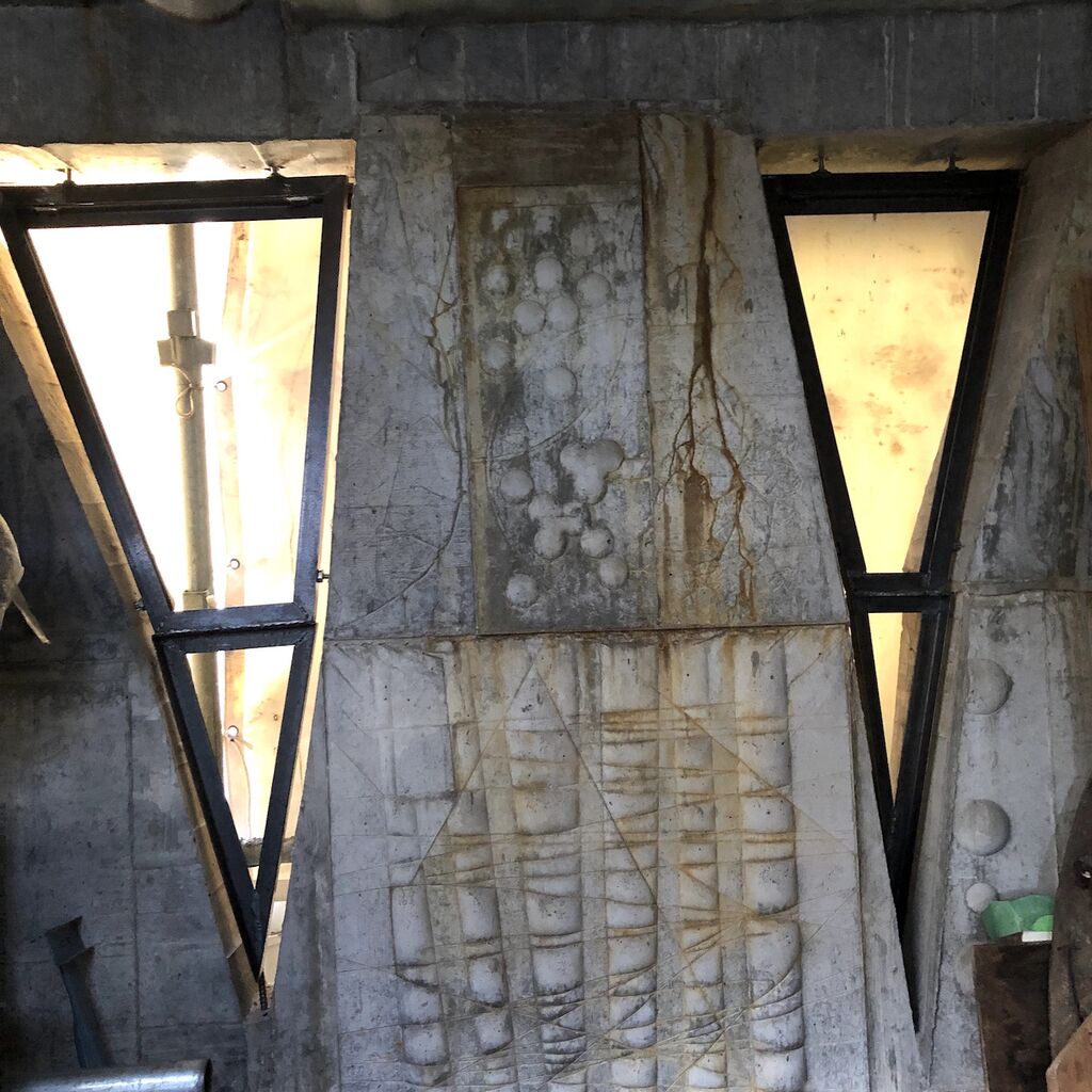 ベースはそのような仕組みだが、それぞれが作業の中でやり方を見つけ、またどこかしらへの探究心とこだわりを持って、一つ一つの窓を作っているので、どれとして同じ形の窓はない。そもそも蟻鱒鳶ルのグネグネとしたRC躯体の開口部、というよりも裂け目のような空隙の形状や質感に応答するような窓の在り方をそれぞれが模索している。