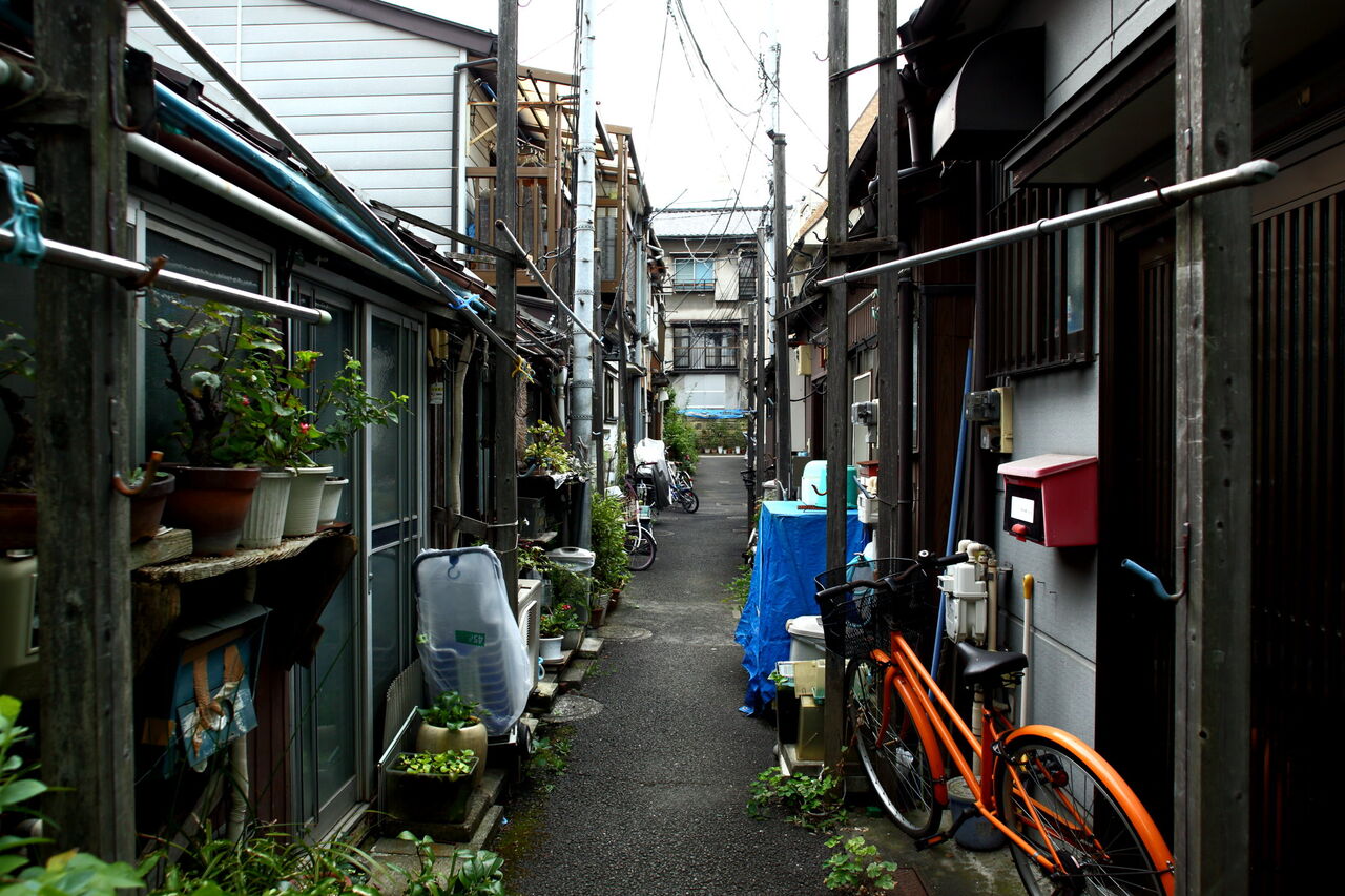 ph3 樋口一葉旧居のあたり。木造三階建て裏側の路地。本郷4-32。2009.11.10