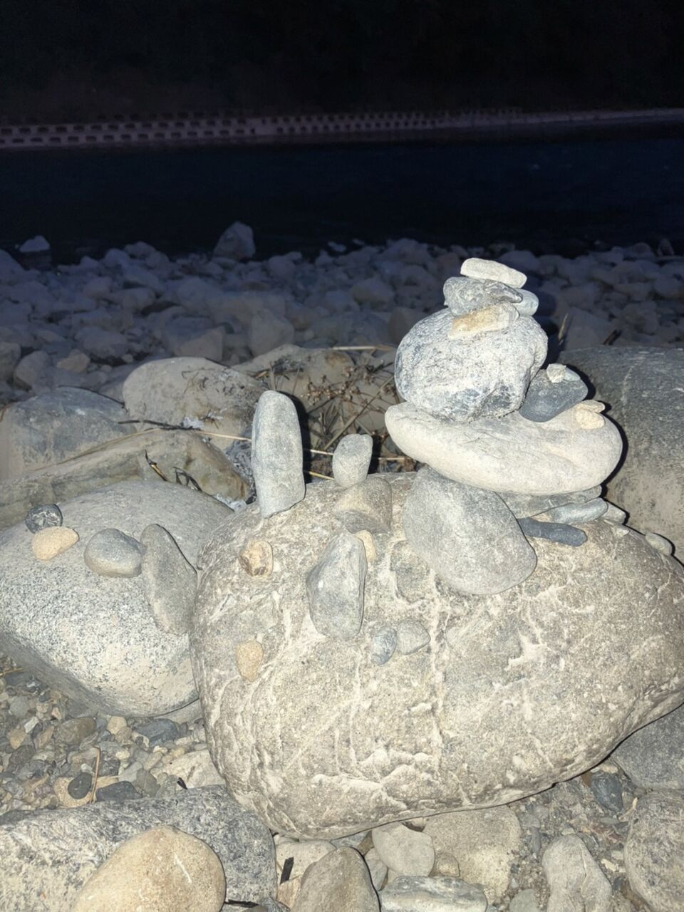 あらすじは、見知らぬ町を訪れた女が河原で水切り遊びをしている男と出会い、川辺を歩くという至極シンプルなもの。小川あんさん演じる女が見知らぬ人とどんどん交流していく様子を、映画を観始めて間もないころはどこか危なっかしく、自分とはかけ離れた存在のように見つめていました。しかし作品を観終えるころにはその印象はスッと身をひそめ、代わりにその場その時の大きな流れに運ばれていくことの豊かさや、そうして運ばれたものどうしが、束の間となり合うことの奇跡(と言い切りたくなる時間)について考えるようになりました。そう思えたのは、『石がある』という映画が、私の固い頭をほぐして目の前の景色を生まれ変わらせてくれたからなのだと思います。