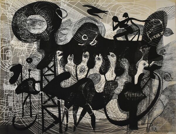 瑛九はその生涯を通して、様々な技法に独自の表現を求めて膨大な作品を生み出し、48歳の命を燃やしつくしました。その作品と在りようは、靉嘔、池田満寿夫、磯辺行久、河原温、細江英公ら若い作家たちに大きな影響を与え、日本の前衛美術のパイオニアとして大きな足跡を残しました。