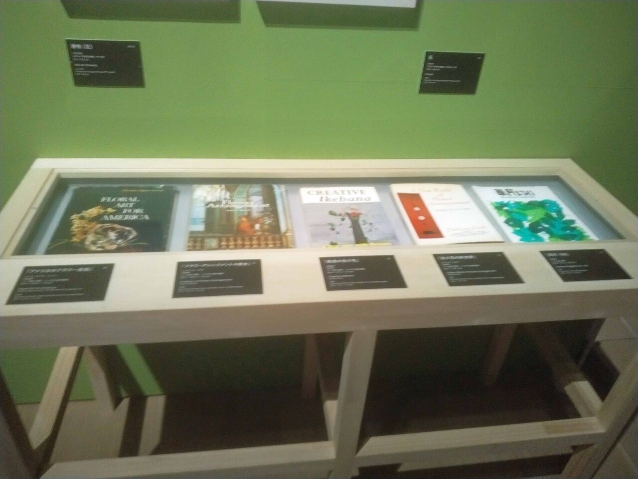 図24生け花の資料の次のコーナーでは、当然、生け花をモチーフとする作品が展示されている(図25,26)。向こう側には日本旅行の土産として購入したという着物が2着(図27)。着物の図柄も花だ。