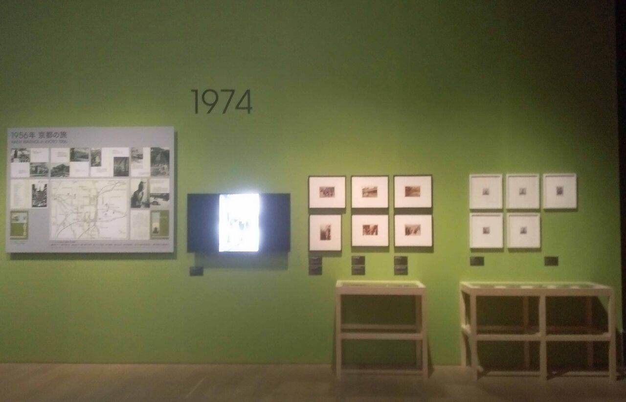 次のコーナーでは商業イラストレーターとして成功し、1956年、友人で恋人だった(プラトニックな関係に終わったそうだが)チャールズ・リザンビーとともに世界一周の旅に出て、日本に滞在した際の資料などが展示されている(図15)。滞在中のスケッチ、リザンビーが撮影した写真をはじめ、旅行案内や旅程表、ホテルのパンフレット、絵葉書などなど(図16~19)。いずれも保存状態は悪くなく、大切にされてきたように見える。74年には2度目の来日を果たしている(図20)。同年のスタジオ移転のときから、自らの生涯の資料を段ボール箱に詰める作業を開始し、毎日、儀式のように続けたらしい。亡くなった時には610箱に達し、「タイム・カプセル」という作品として残されたという。日本や京都に関する資料だけでなく、人生で堆積したあらゆる資料も、きちんと分類・保存されているのだろう。個人的には造形や映像よりも、この「タイム・カプセル」に最も興味を覚えた。