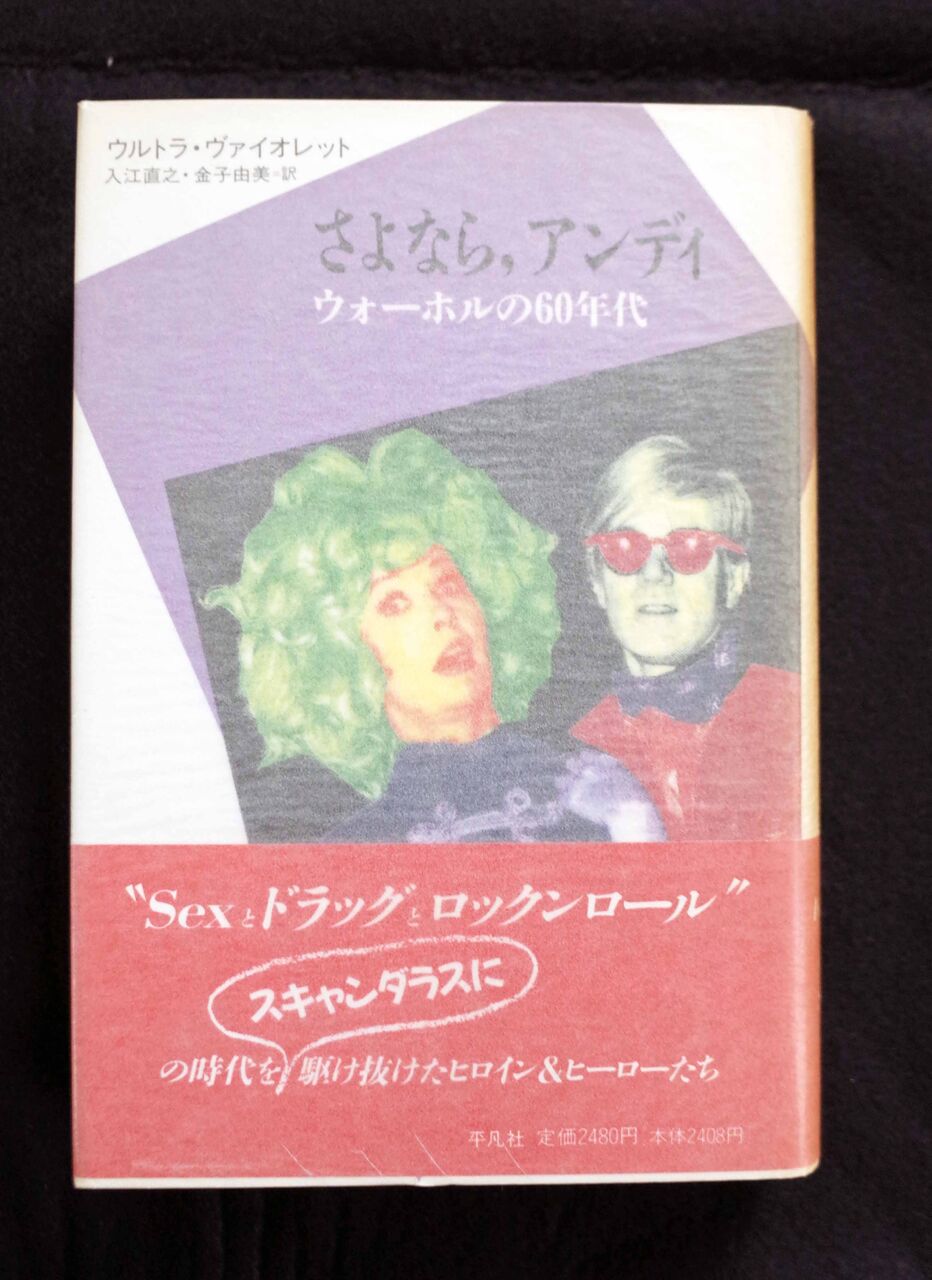 図1初心者というよりも、ウォーホルを敬遠していた、あるいは嫌っていたといった方が良いかもしれない。これは最初に読んだ関連書籍が、ウルトラ・ヴァイオレット『さよならアンディ ― ウォーホルの60年代』(平凡社、1990年。図2)だったからかもしれない。友人の田邊道彦氏(この本の編集者)が1冊贈ってくれたのだが、帯に「“Sexとドラッグとロックンロール”の時代をスキャンダラスに駆け抜けたヒロイン&ヒーローたち」と記されているとおり、ファクトリーの様子や安易とも思える制作過程が冷ややかに綴られており、ウォーホルその人に共感を抱けず、その後も長い間、関心が向かなかった。惜しくも本年7月21日に亡くなられた岡崎和郎先生とお話ししていた際に、ウォーホルのことをマルセル・デュシャンと並ぶくらい高く評価されていたのだが、今一つ腑に落ちなかったのを記憶している。