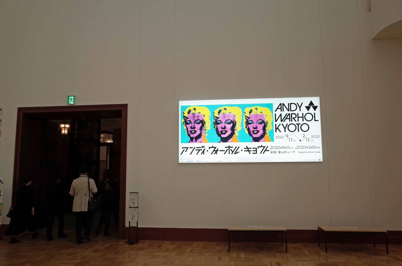こうしてポップアートに関心を持ち始めていたところ、京都市京セラ美術館(図6)で「アンディ・ウォーホル・キョウト」展が開催されていると聞いた。200点以上の展示作品全点が、ピッツバーグのウォーホル美術館の所蔵作品から選ばれたとのこと。遅ればせながら、これは是非拝見しなくてはいけない。大阪の二つの具体展や京博の茶の湯展などを組み合わせ、11月1日~3日の2泊3日の日程を組んだ。本展を拝見したのは2日(水)。朝一番で訪れ、当日券を求めた。平日でしかも開館前に到着したので、行列に並ぶこともなく、すんなり入館できた(図7,8)。