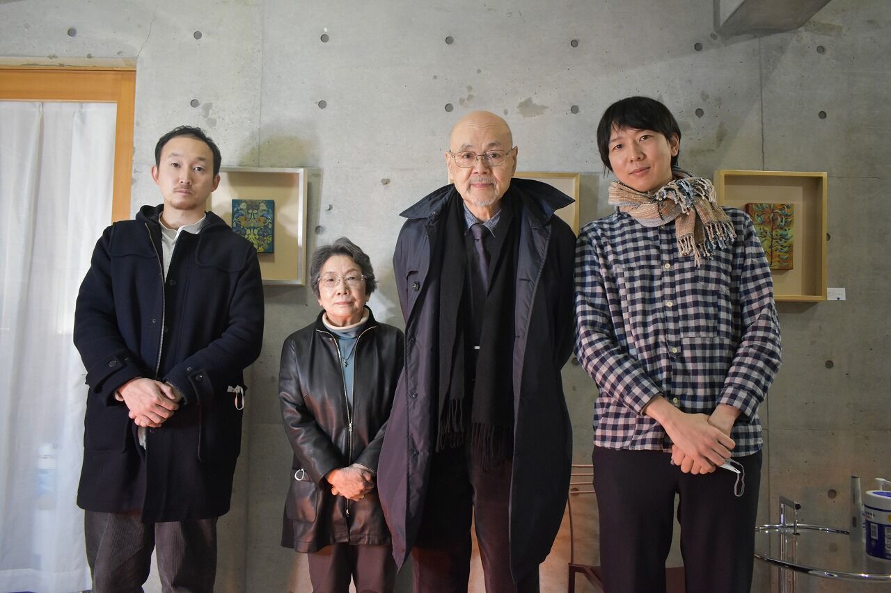 展示15 左から作家の菅間圭子さん、森下泰輔さん、社長、亭主