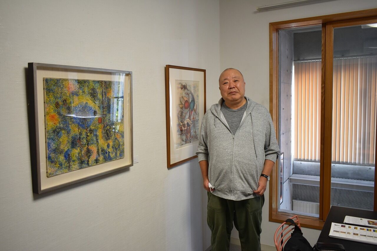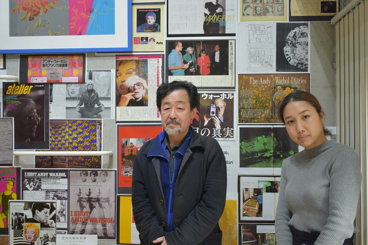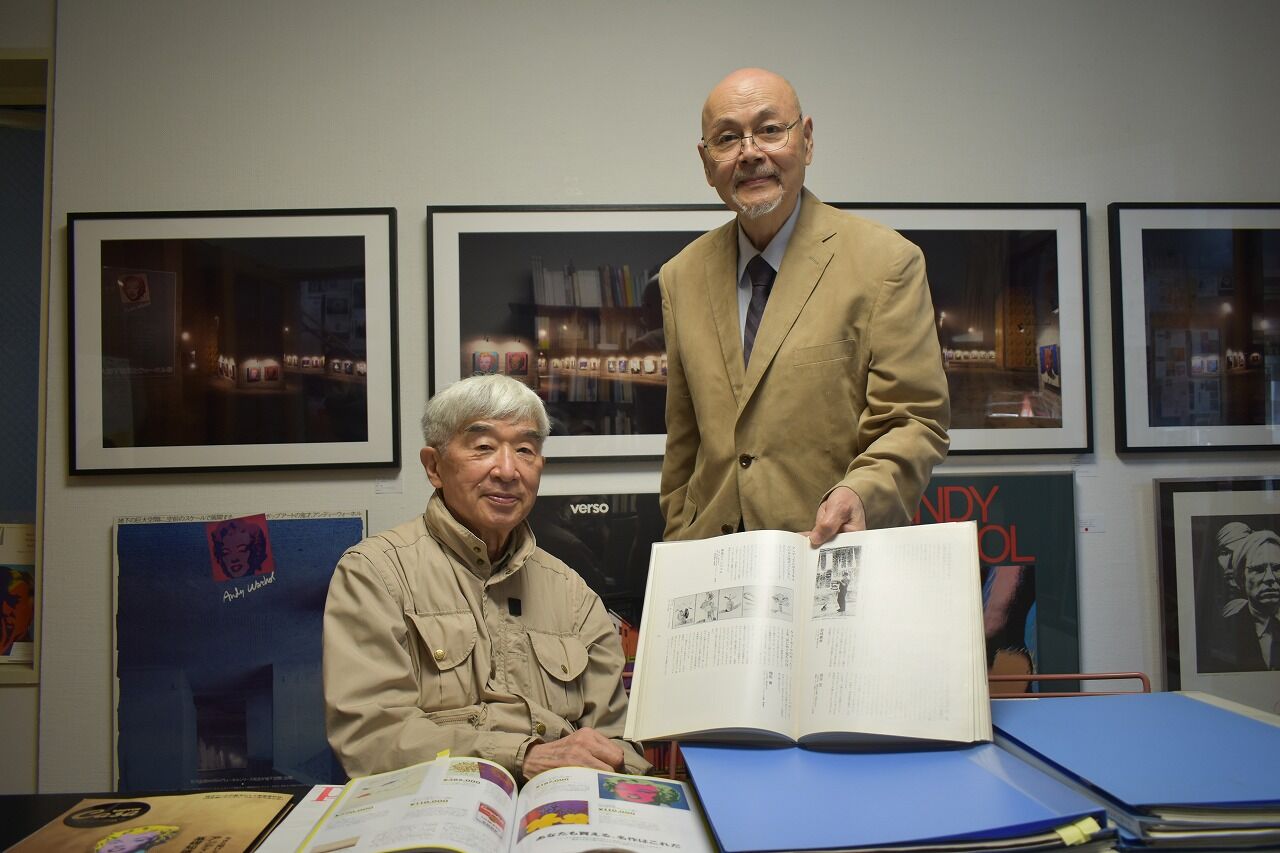 展示18 ウォーホル三人衆(宮井陸郎、根本寿幸、栗山豊)のうちただ一人健在なのはギャラリー360°の根本寿幸さん(右)。