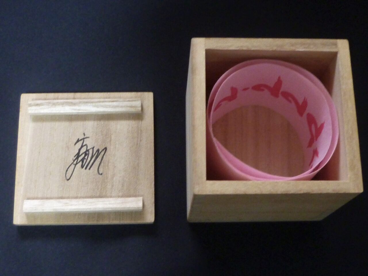 この作品についてのデータは不明だが、「一般財団法人松澤宥プサイ(ψ)の部屋」のホームページ上に同じものと思われる函が積まれた写真が掲載されているので参照されたい。函の上蓋にはψのマーク、裏には自筆のサインがある。函の中には短冊状の桃色の薄紙に松澤宥のコンセプトである記号数字が赤で印刷され、巻いた状態で入っている。販売されたものか関係者に配られたものか分からないが、このような作品がネットオークションに出ることは珍しい。何年前のことだったかデータも残っていないが、意外に注目されず1万5千円ほどで落札した記憶がある。