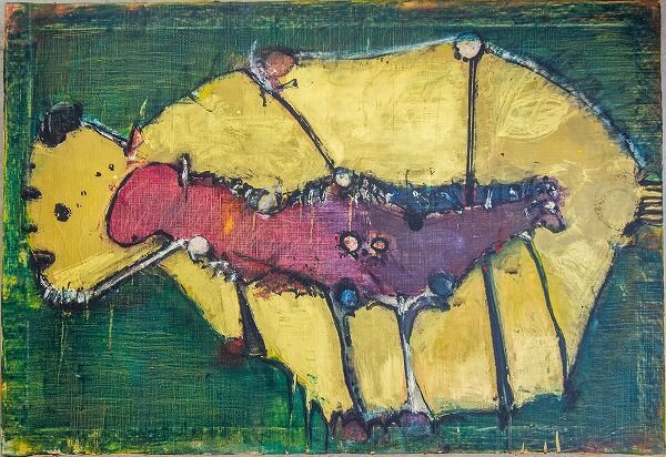 かって世界を風靡したアンホルメル絵画などの影響を受けて、私もまた抽象的なものを描き続けていたのであるが、いつも他人が私の作品を見て問うのは「コレは何を描いたのか」ということであった。もっと正確に言うなら、コレは何をイメージしているのかというのであったろう。そんな場面で私は毎度コレは何を見て描いたのでも、何かのイメージを表象したのでもないと、心に反問しつつも、何も描かなかったとは言えずに沈黙せざるを得なかった。そんな苦痛が沈殿して、ふと「思ふツボ」と口に小さく呟いたのが動機だったのである。 と、語ってしまうと呆気無いようであり、日常性の中で沈殿してくる感慨が《発想》のツボだと思えなくもない。 (つづく)