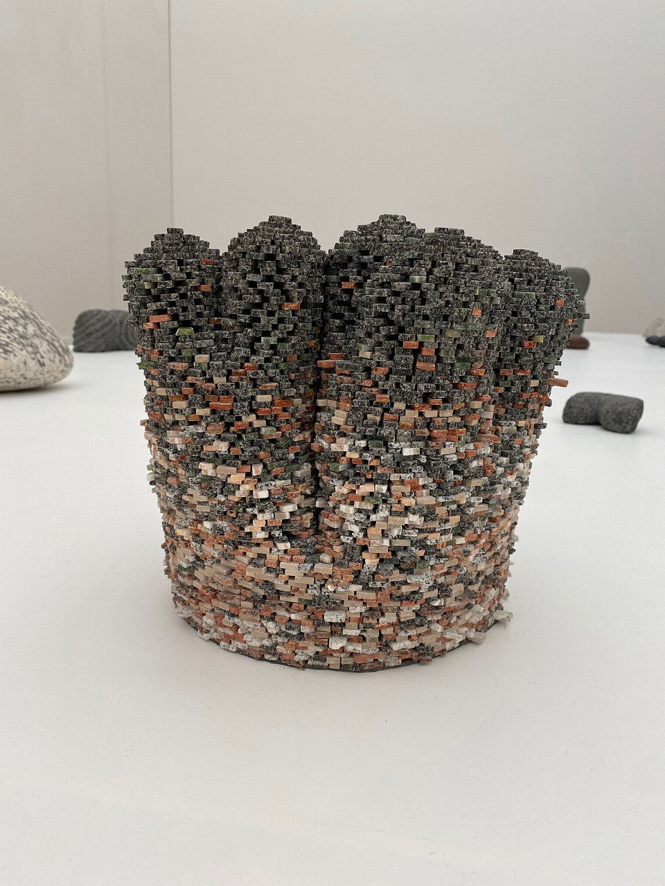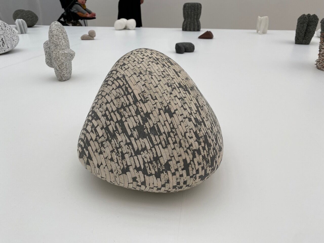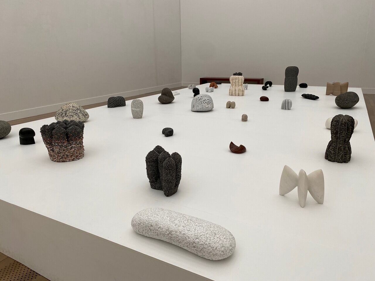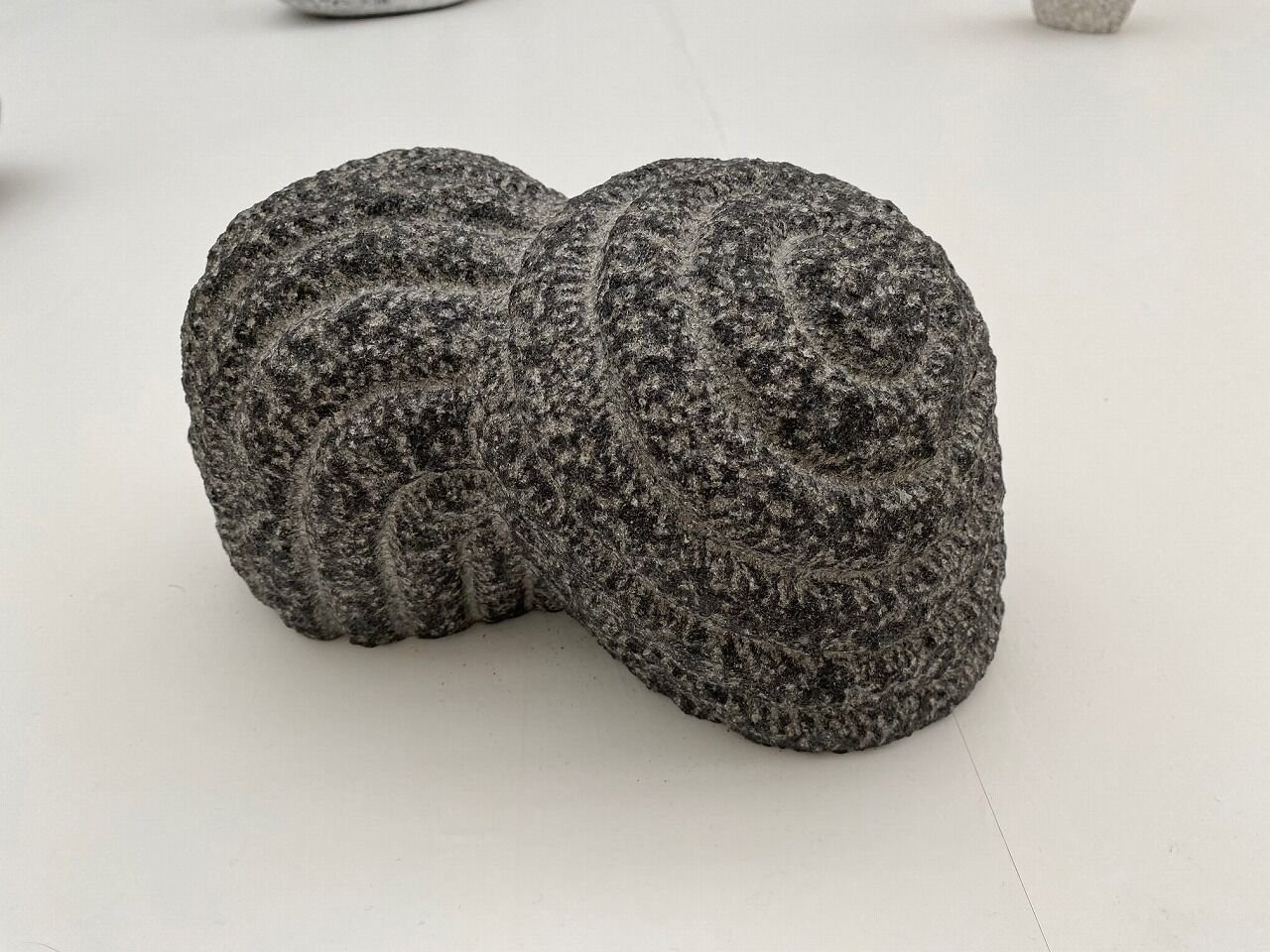 北川太郎さんは2007年から2010年の3年間ペルーに研修に行き、現在は岡山県備前市の大自然の中で彫刻を制作しています。石をのみと石頭でこつこつと掘って制作された純粋な石彫群は、どれも温かみがあり、まるで古代からあるような存在感を放っていました。