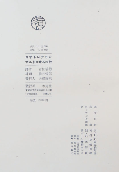 ロオトレアモン『マルドロオルの歌』1952年
