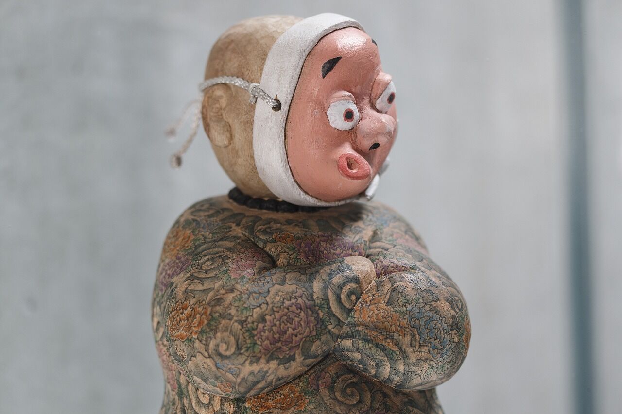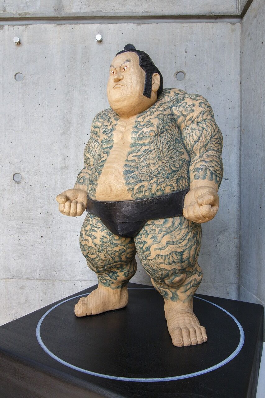 <仏師による職人的な木彫の技術も、市井の彫師による刺青の技術も、明治以降の「近代化」という嘘くさいテーゼによって、アカデミズムとしての「美術」から遠い地点に追いやられて、100年あまりの時間が経ってしまった。だが、その命脈は完全に絶えたわけはなく、復権させようとする機運はたしかにある。葉栗剛は、ドメスティックな木彫をとりもどすために重要な仕事をしている作家だと思う。海外の人のほうが、かえってそのことを理解してくれるかもしれない。>