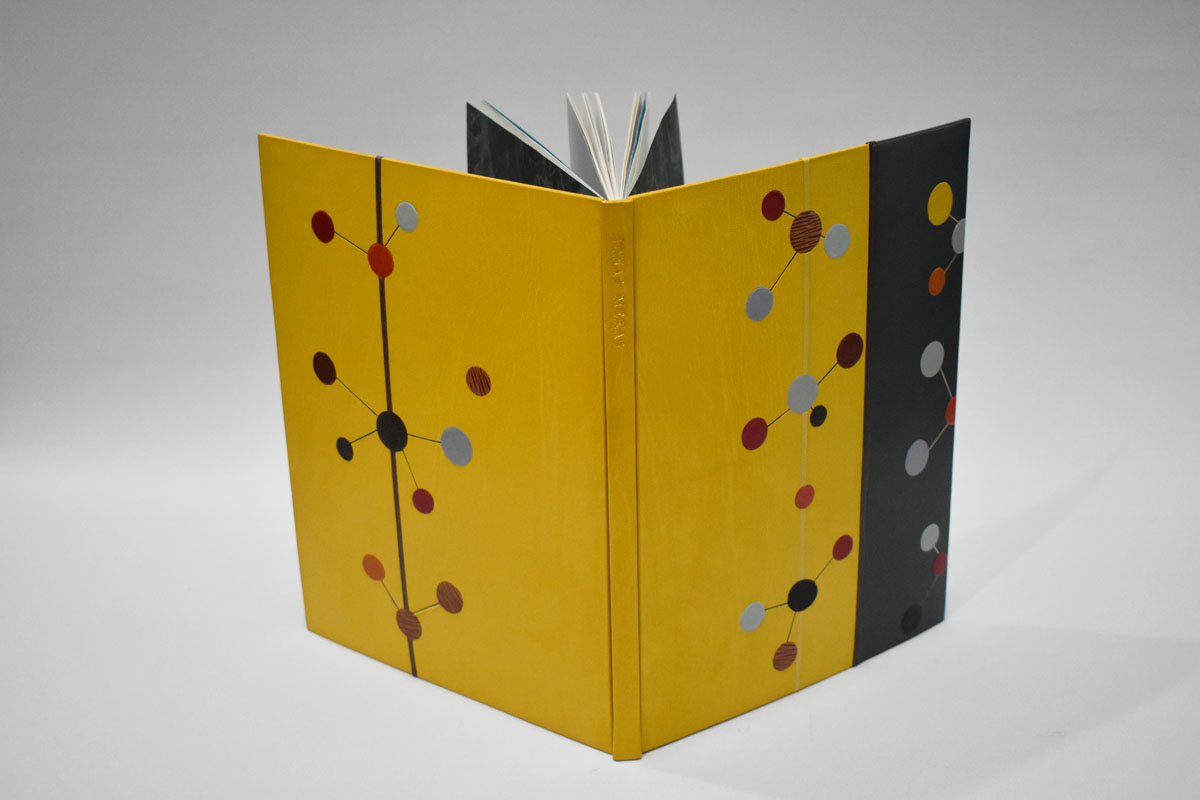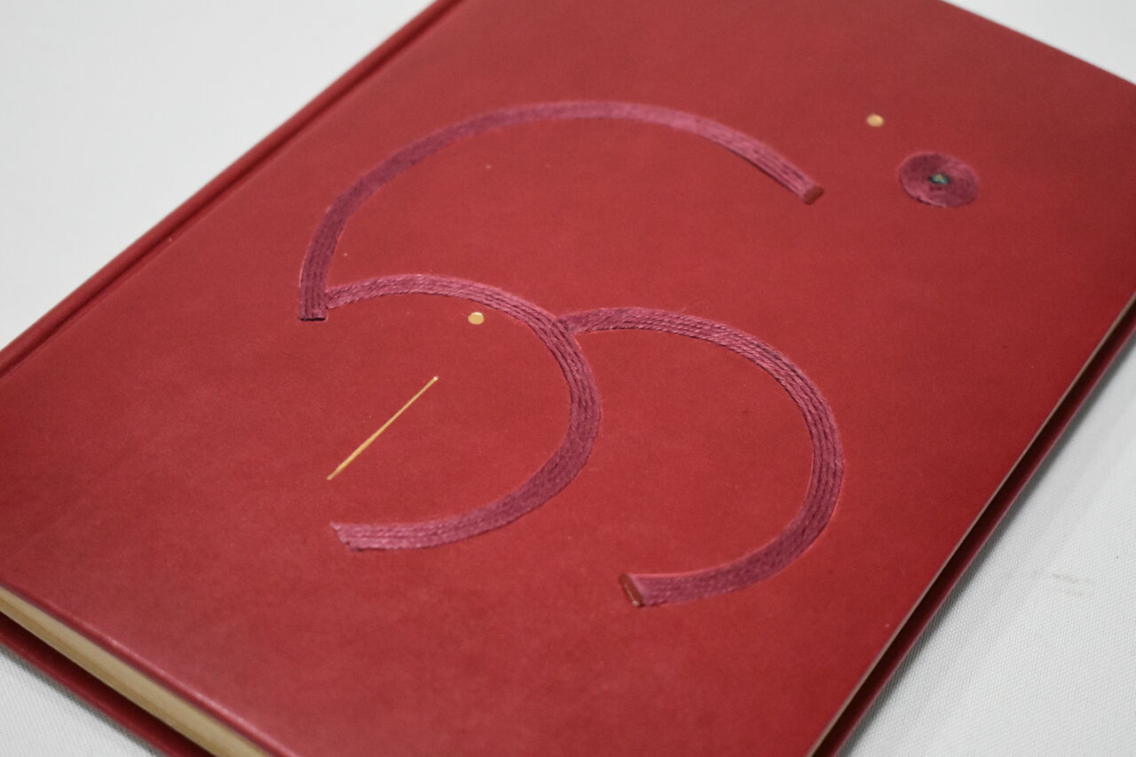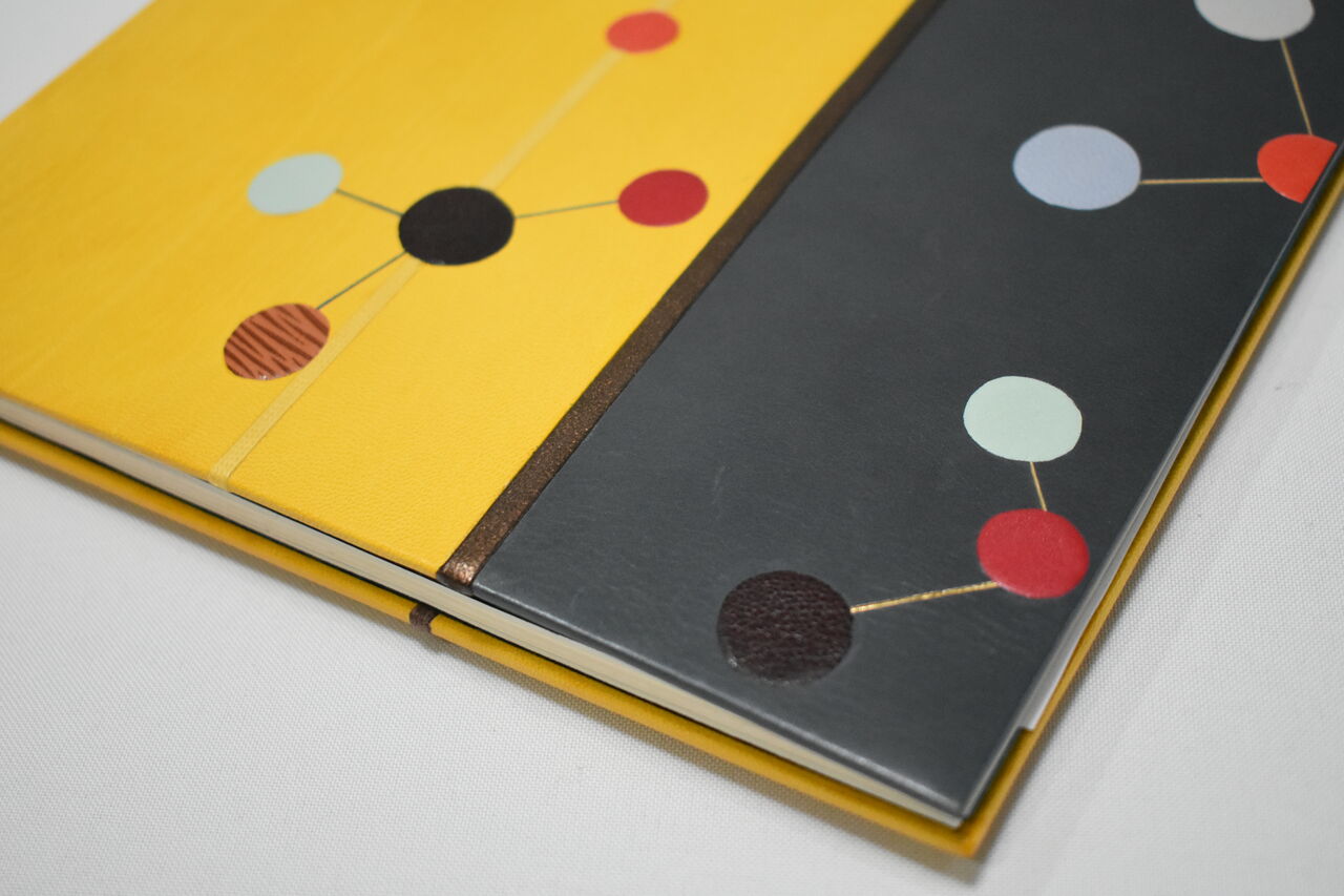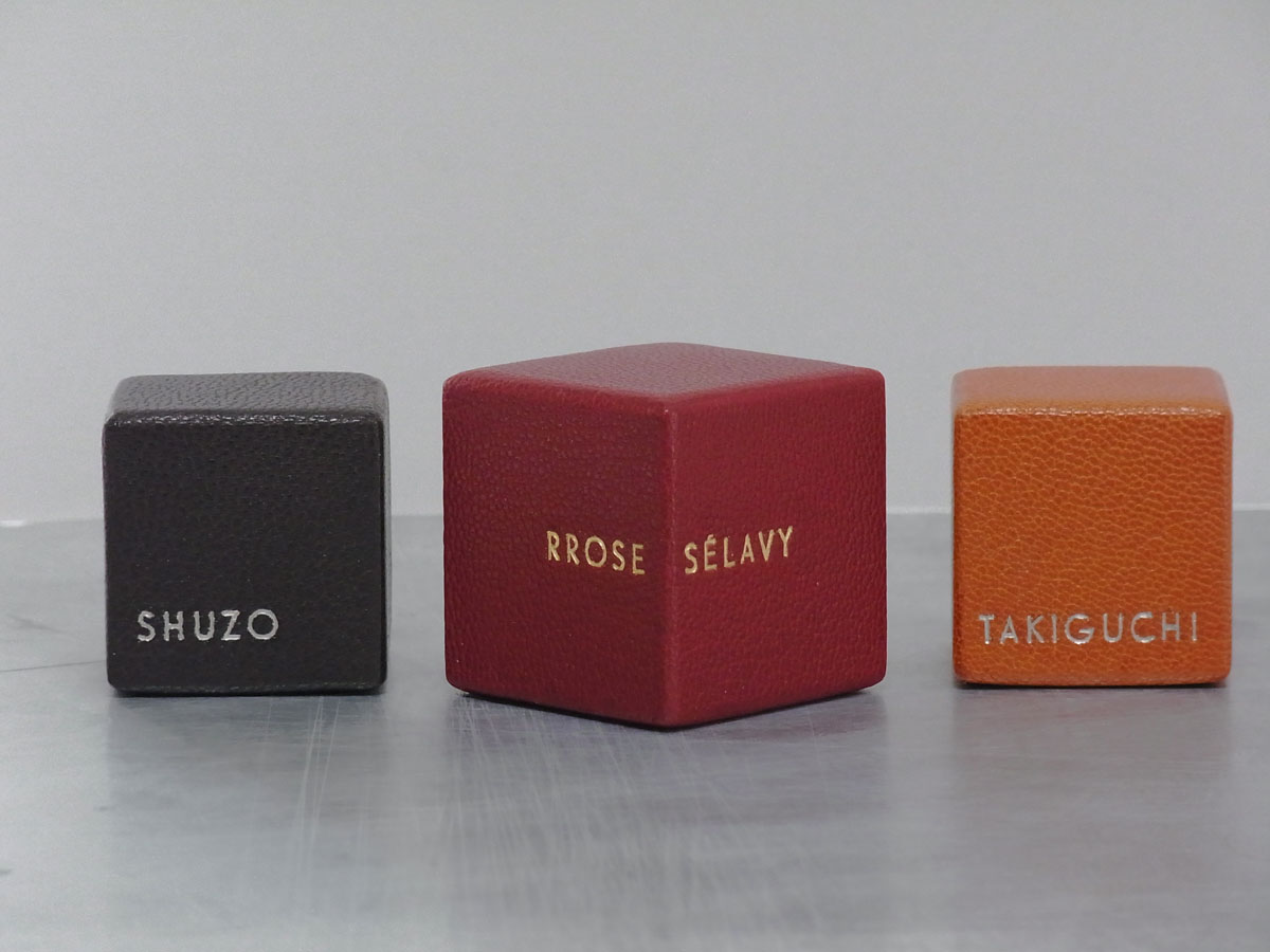鉄塊に山羊革、金箔とパラジウム箔での箔押し