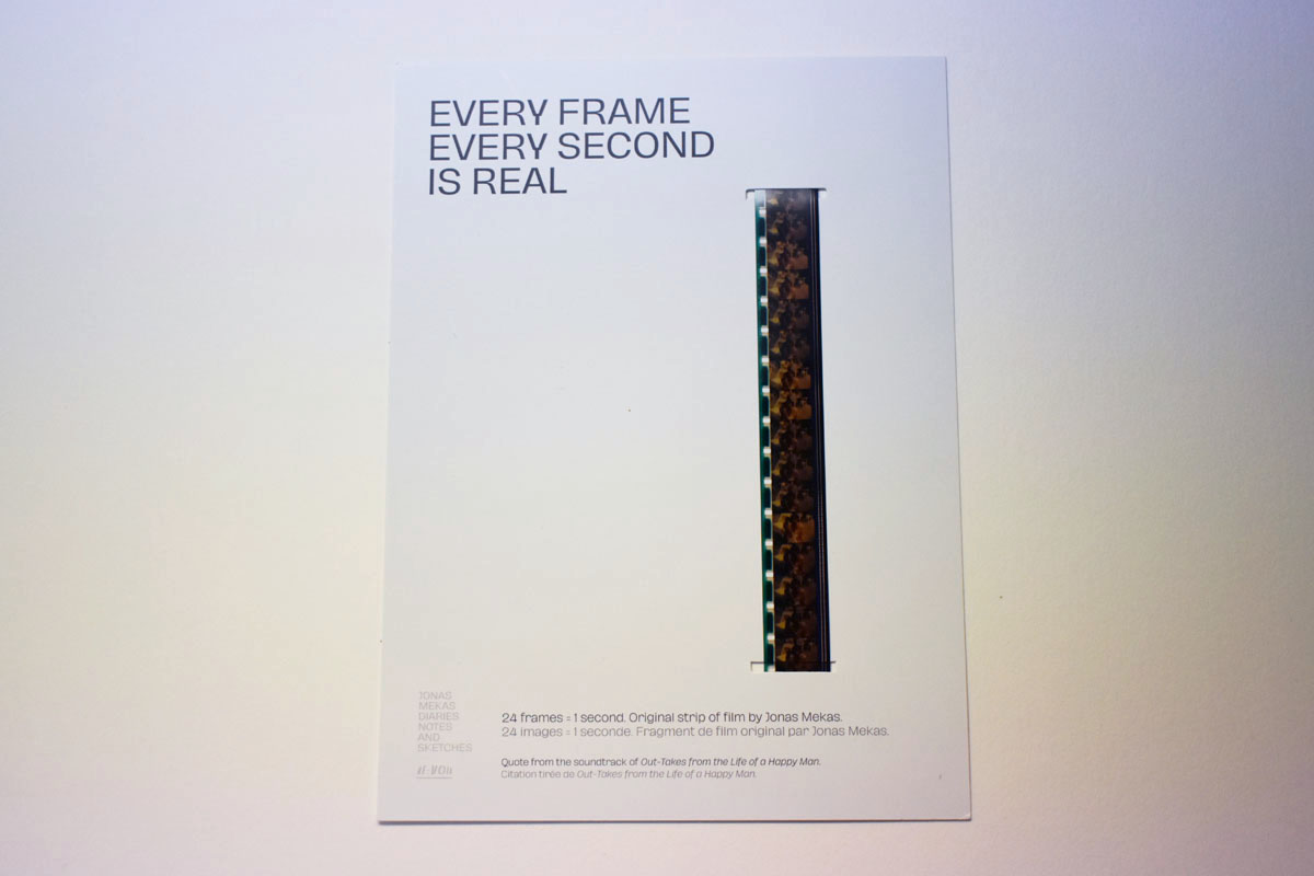 概要だけでも十分に魅力的な商品ですが、ぜひ皆さまにも知って頂きたいのが豪華な「おまけ」の存在。24枚のポストカード、メカス本人による作品解説冊子に加え、このボックスにはなんと、オリジナルフィルムの一部が付いてきます。