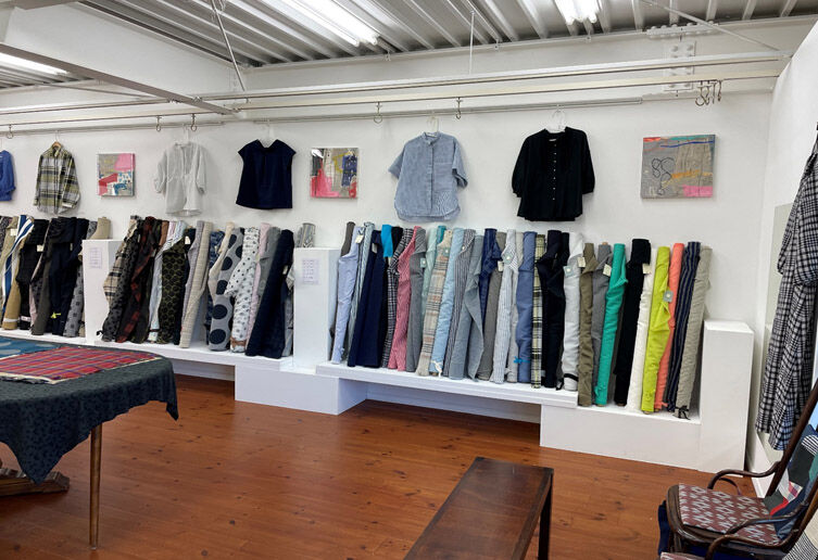 君島、若宮、渡辺展DMあれからもう干支が一周!時の過ぎる早さに驚愕しつつ、当時と変わらず私は現在も山梨の富士吉田市で、家業である織物業の傍ら制作をしています。7年前に父が他界してからは織物の仕事が生活の中心になり、更にこのコロナ禍でこの業界も大きな影響を受けたことで仕事の事を考える毎日になりました。ここ数年は制作よりも、生地を売るために何か出来ないか?が、優先でした。陶芸の展示でお世話になったギャラリーで生地売りを開催させていただいたり、マスク不足の際に部屋の隅で埃をかぶったミシンを出したのがきっかけで、会社で織った生地で洋服作りを始めたりしました。以前から生地売りのために洋服などのサンプルがあるといいな…と思いながらも中々実現できなかったので、家に籠る時間が増えたことで始められた副産物的な出来事をありがたく思いました。また、それが想像以上に楽しく、奥深く、没頭できる作業だったことはとても意外な発見でした。もちろん洋服はまだ販売レベルではありませんが、陶芸と違う素材や作業工程はまた別のモチベーションを私に与えてくれる大切な活動になりそうです。