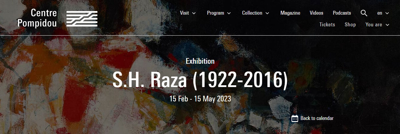 本日ご紹介するのは、来月の15日までポンピドゥーセンターにて開催中の「S.H. Raza (1922-2016)」です。その名の通り、ジョナス・メカスと同じように2022年に生誕100年を迎えたインドの作家、サイード・ハイダー・ラザ(Sayed Haider Raza、1922-2016)が、パリに定住した1950年から2011年までに制作した約100点の作品を展示する回顧展です。