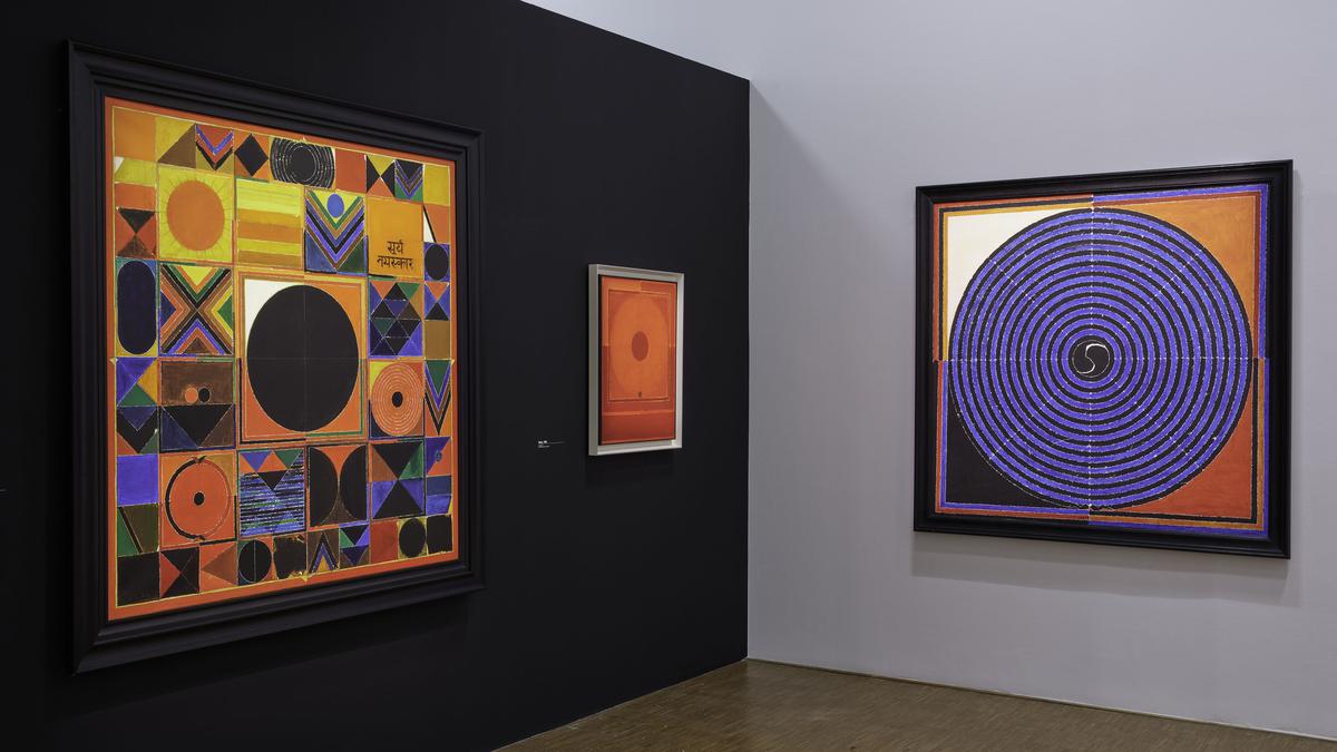 展示中のビンドゥ(点)を題材とした作品の一部。Photo Credit: Bertrand Prévost今展覧会は作家の作品の変遷を時代順に展示し、20世紀美術における異文化のダイナミクスとその問題を例証する現代作品群の形式的、概念的な発展を追うことで、1950年代から1990年にかけての現代インドの複雑なプロジェクトや、グローバル化した現代の創造空間を定義する問題を理解するための参考資料とするものと公式ページで説明されています。
