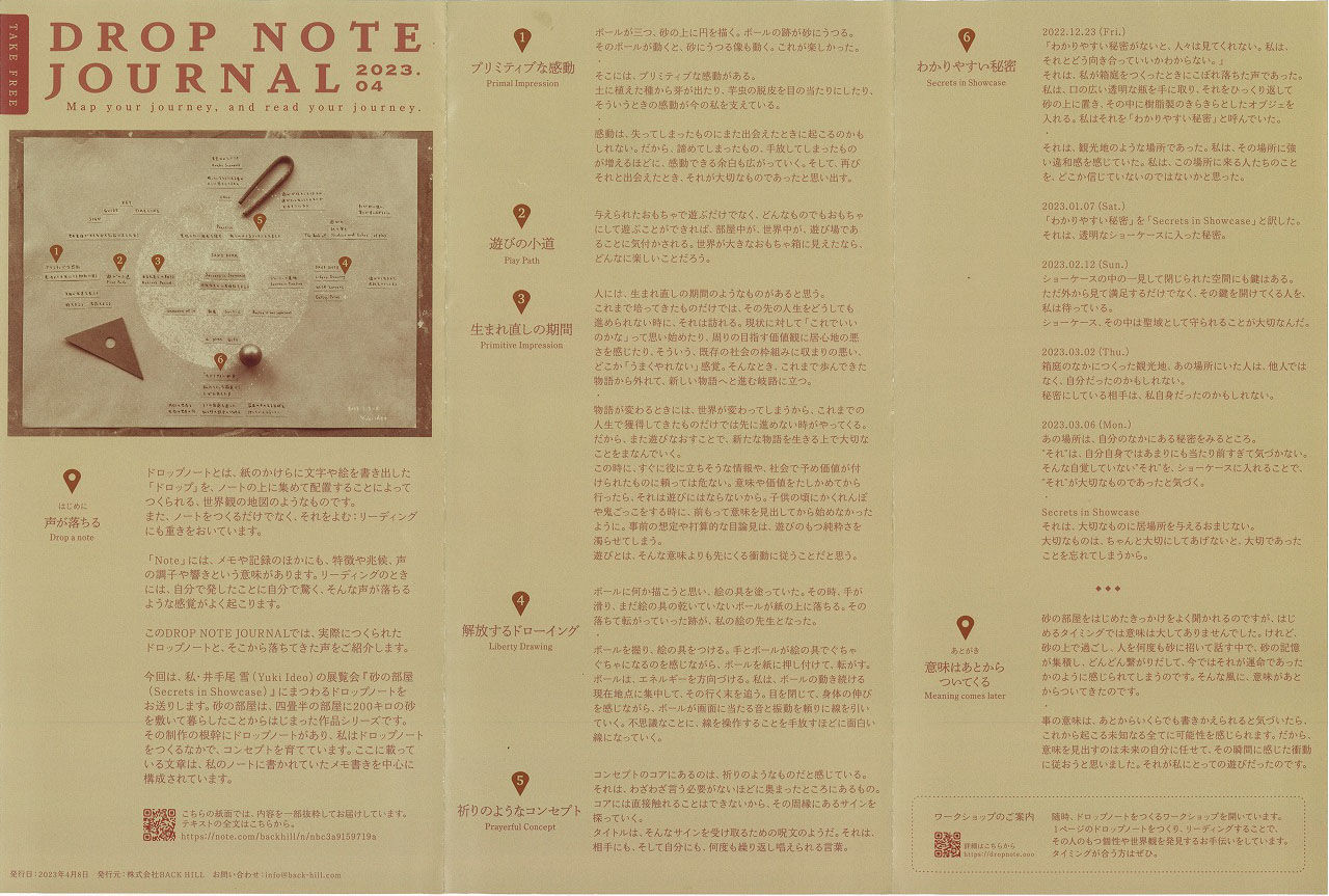また、井手尾さんのアイデアやコンセプトが言葉やスケッチとて日々更新されていくドロップノートも公開されており、こちらもなかなか面白いので(タロットカードが出てきたりと)、見る機会があれば是非見せてもらってください。